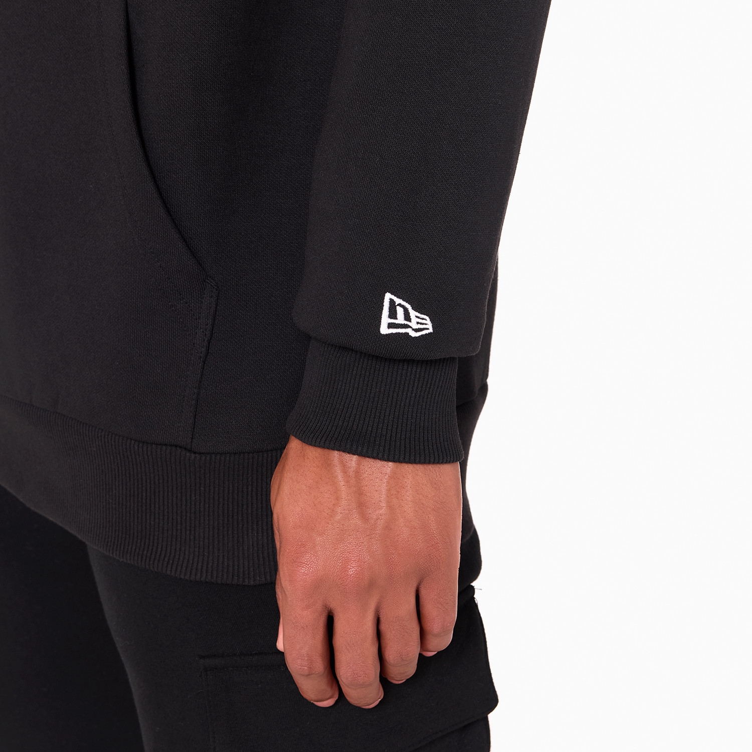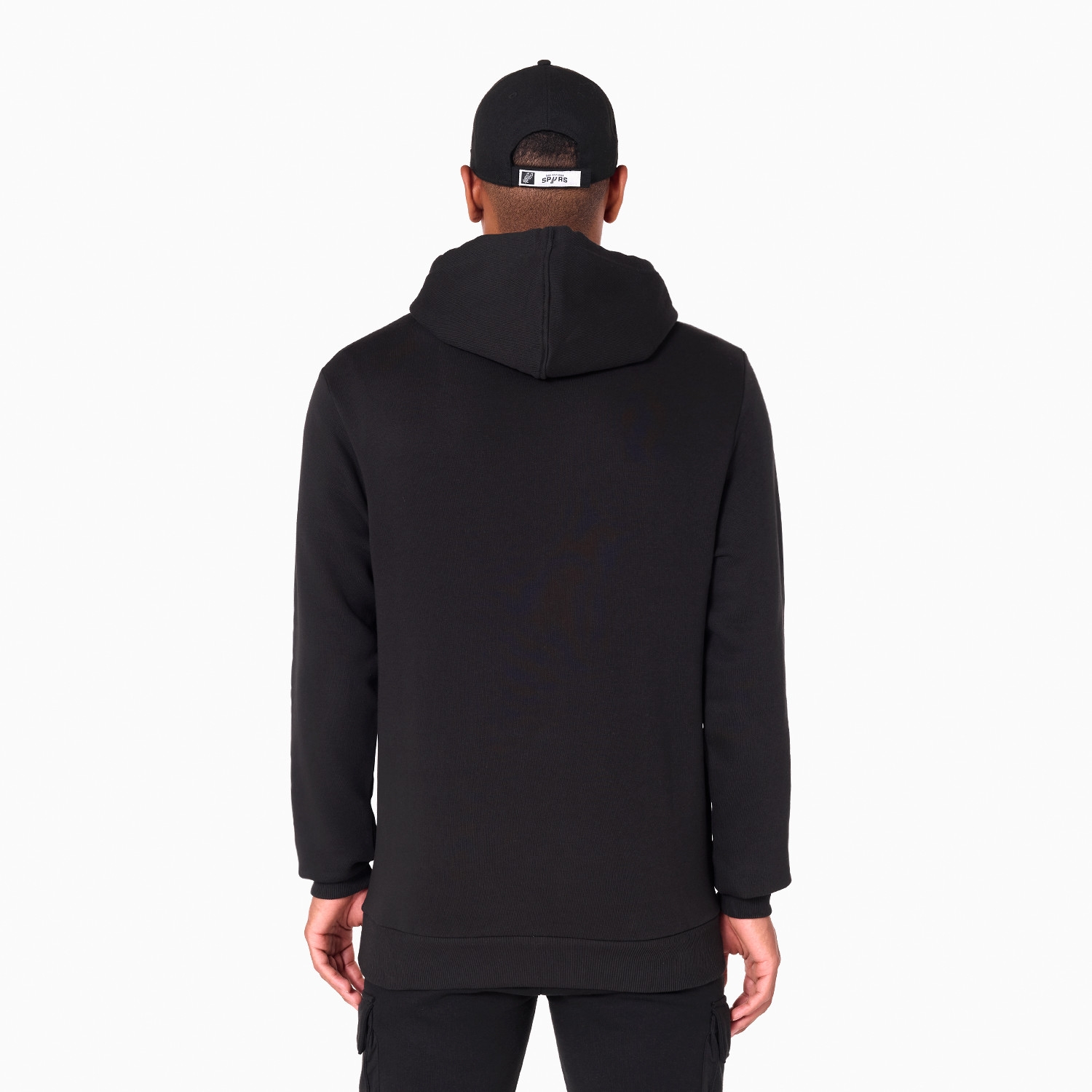 Premium Pull-over long sleeve hooded sweatshirt by New Era. Screenprinted San Antonio Spurs team logo and team wording on center front chest. Team colored New Era flag embroidery on left cuff. With kangaroo hand pocket, attatched hood and drawcord strings. Rib crew neck with interior taping for a comfortable fit. French terry lining on inside.