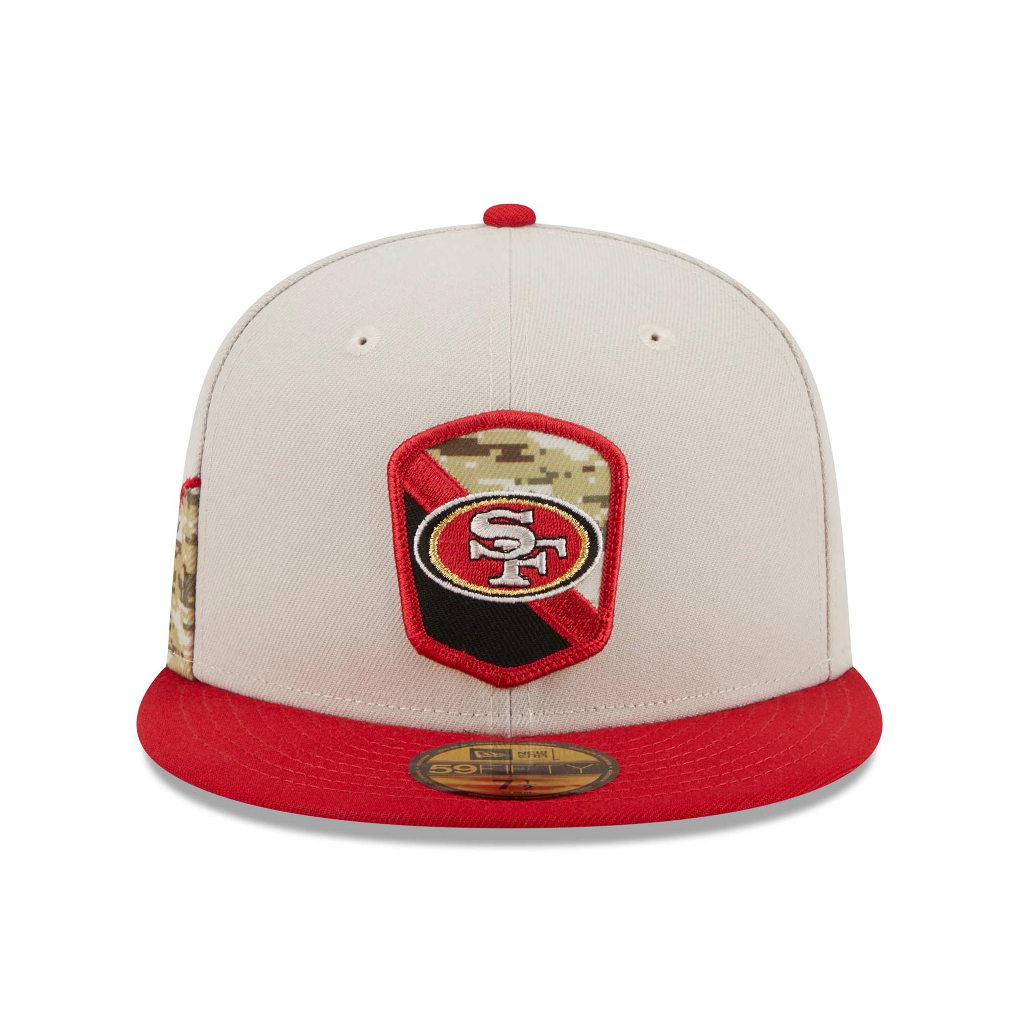 New Era Official On-Field 2023 NFL Salute to Service Edition American Football 59FIFTY fitted Cap from your San Francisco 49ers.