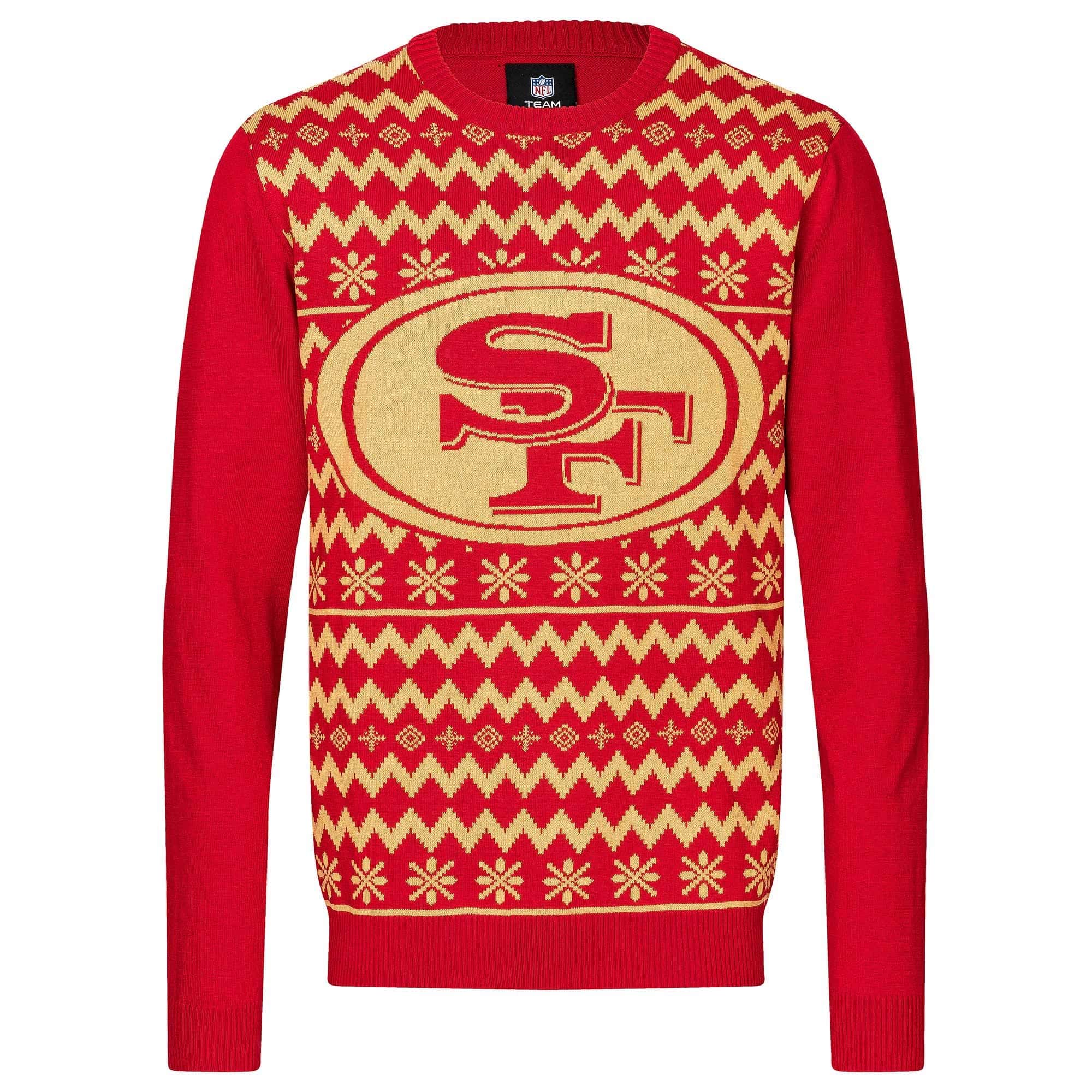We know you're going to be busy this holiday season, so we're bringing you a busy holiday sweater to match! Spread some holiday cheer while you cheer the team on to victory at every Christmas sweater party by rocking this pull-over long sleeve crew pullover from your San Francisco 49ers. Woven in team logos and winter Christmas graphics decorating the whole sweater. With rib crew neck for a comfortable fit. Christmas eve can't come soon enough for every NFL fan with this Ugly Sweater!