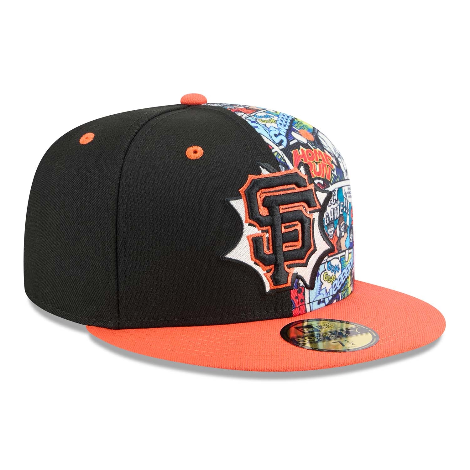 - Bold 3D-stitched San Francisco Giants logo on the front, set against a vibrant all-over comic book graphic inspired by classic graphic novels