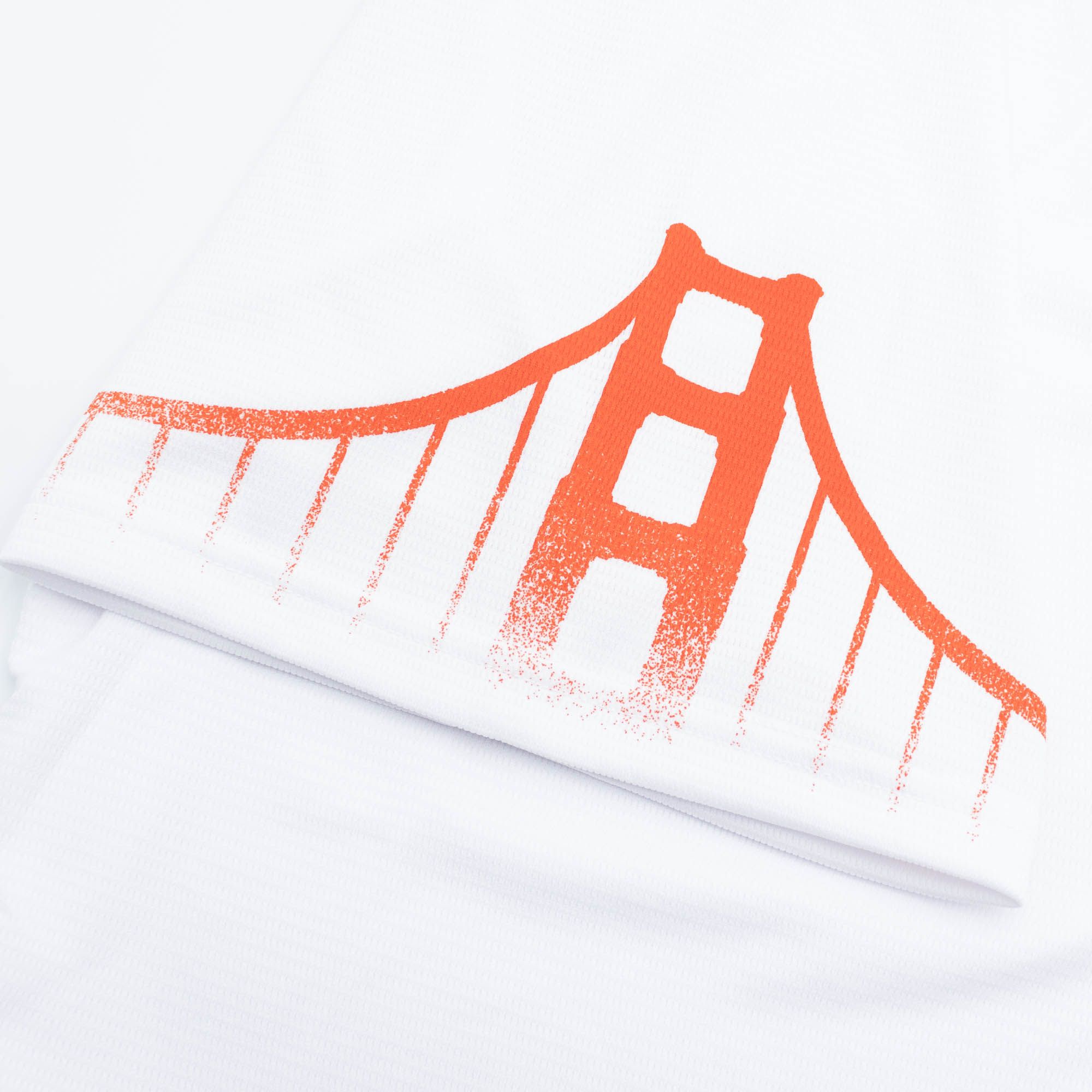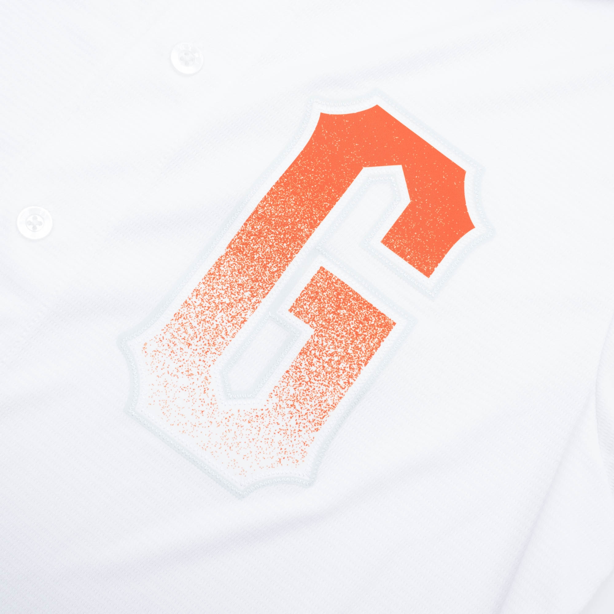 Beneath the Fog, We're Golden. At the entrance of San Francisco Bay, the Golden Gate Bridge peeks over the thick atmosphere -a reminder that in this city, you are in the presence of Giants. This jersey represents what we've always known about San Francisco, that there's more to it than meets the eye. The vibrant colors of the jersey echo the city's energetic drive to work hard and stand out. On the chest a bold G rises from the fog, symbolizing the pride and unmatched passion for baseball. The iconic bridge spans the sleeves and a mysterious "Giants" floats above the fog of the jock tag. This collection embodies everything beyond that thick marine layer -the hidden treasure that is San Francisco.