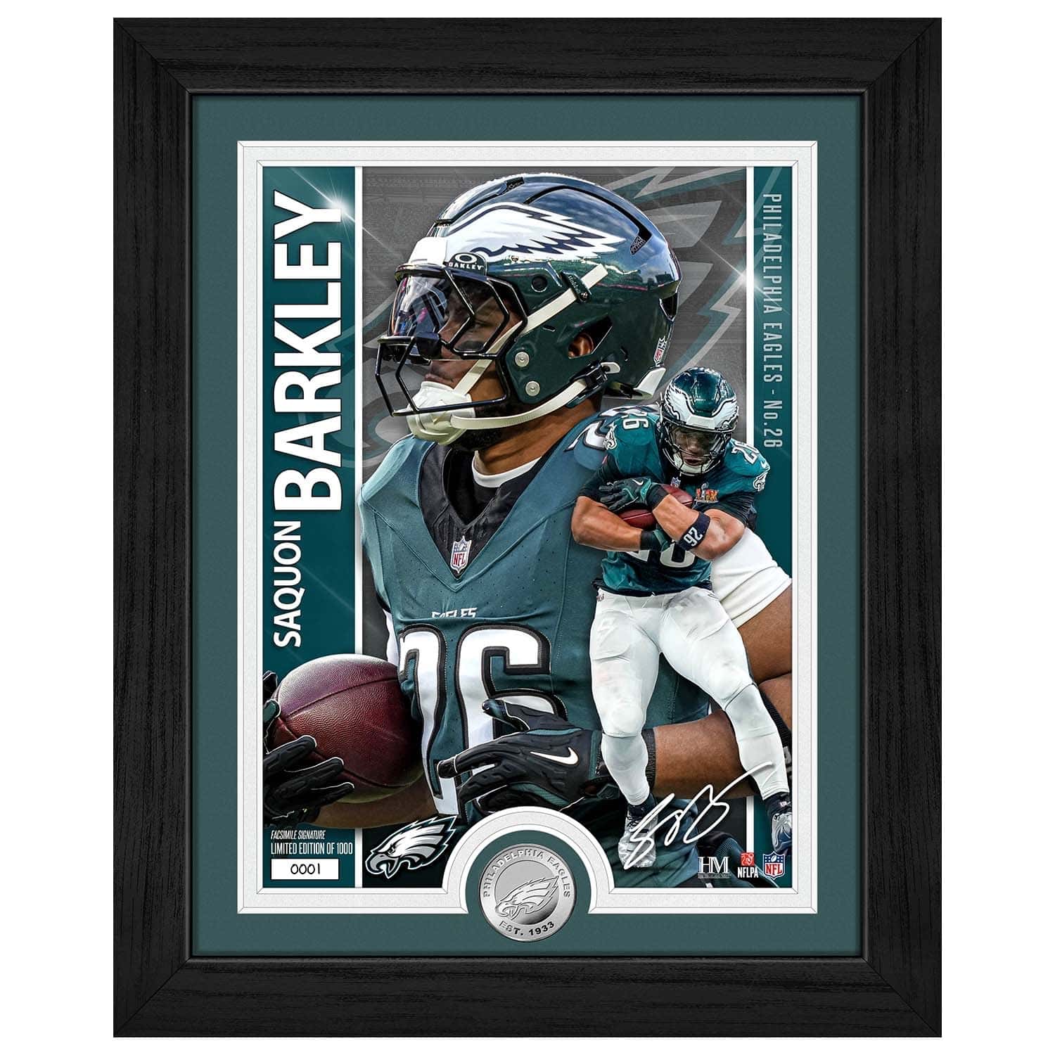 Highland Mint NFL Framed Artwork of Philadelphia Eagles Superstar Saquon Barkley with Silver Coin.