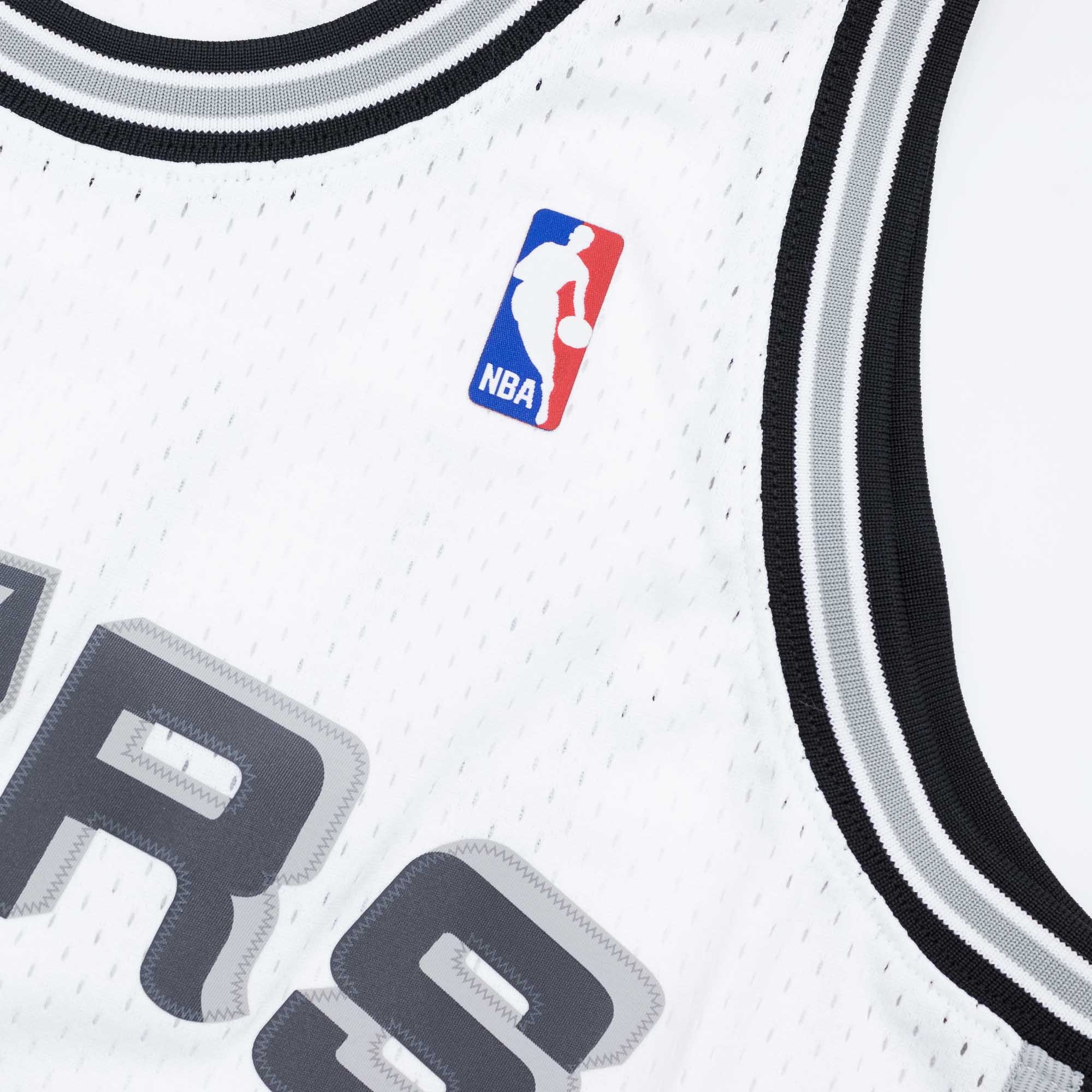 Rep your favorite team and player anytime in the NBA Swingman Hardwood Classics Jersey, replicating what the San Antonio Spurs have worn on the court during that era. With heat seal screen printed twill logo, name and number applications. The body is made from 100% polyester mesh. Woven Hardwood Classics-Mitchell & Ness jocktag at front lower left.