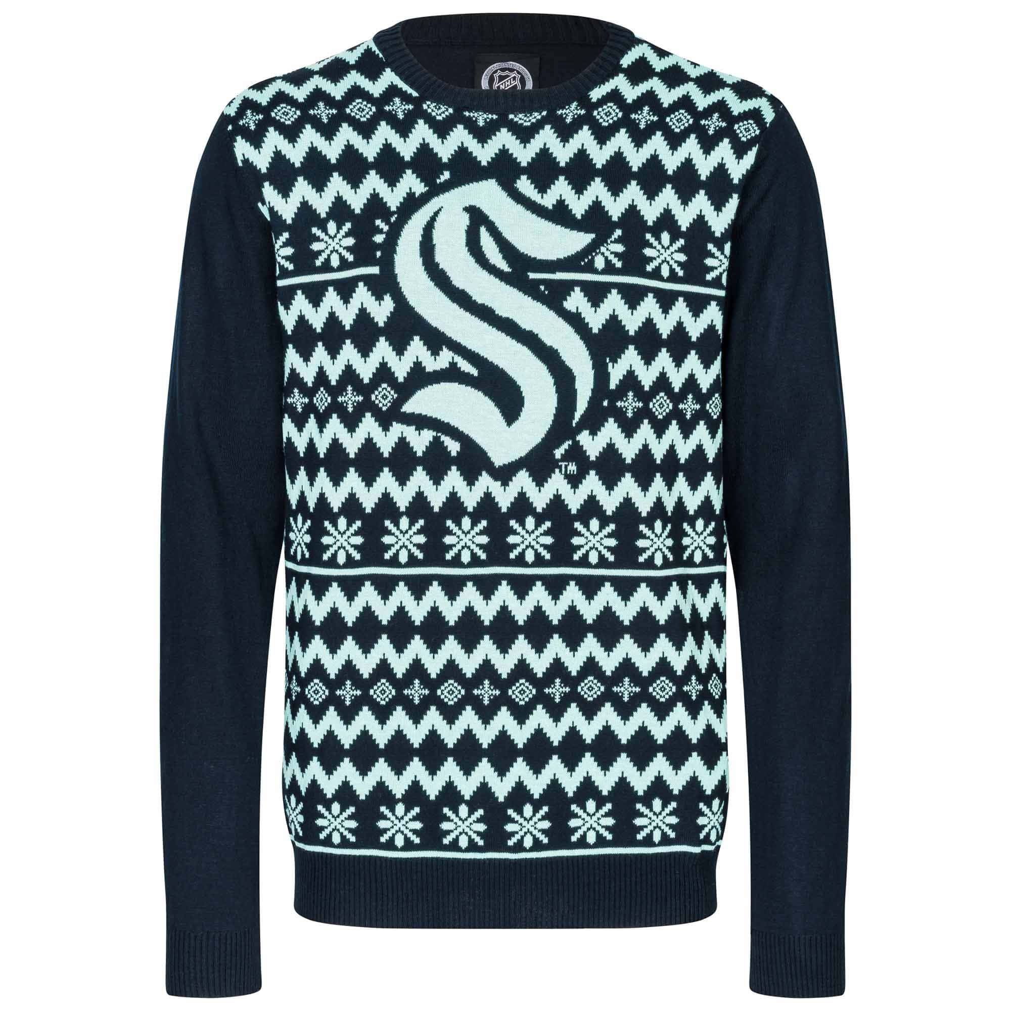 We know you're going to be busy this holiday season, so we're bringing you a busy holiday sweater to match! Spread some holiday cheer while you cheer the team on to victory at every Christmas sweater party by rocking this pull-over long sleeve crew pullover from your Seattle Kraken. Woven in team logos and winter Christmas graphics decorating the whole sweater. With rib crew neck for a comfortable fit. Christmas eve can't come soon enough for every NHL fan with this Ugly Sweater!