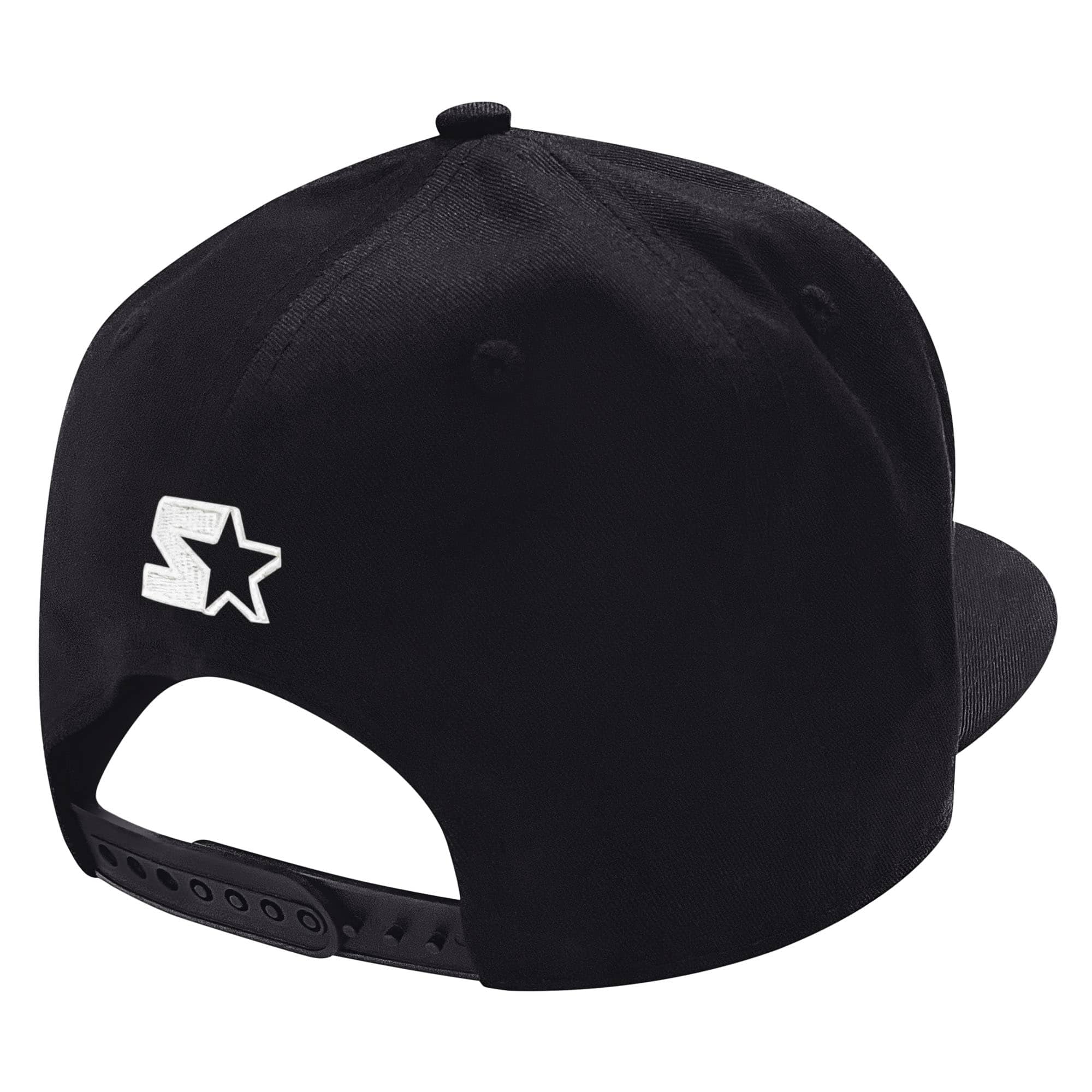 Classic fit snapback profile with a high structured crown and flat visor. Starter logo embroidered on back. Stitched eyelets for breathability. With a structured 6-panel design and a flat brim, it adds an urban and sporty touch to your outfit.