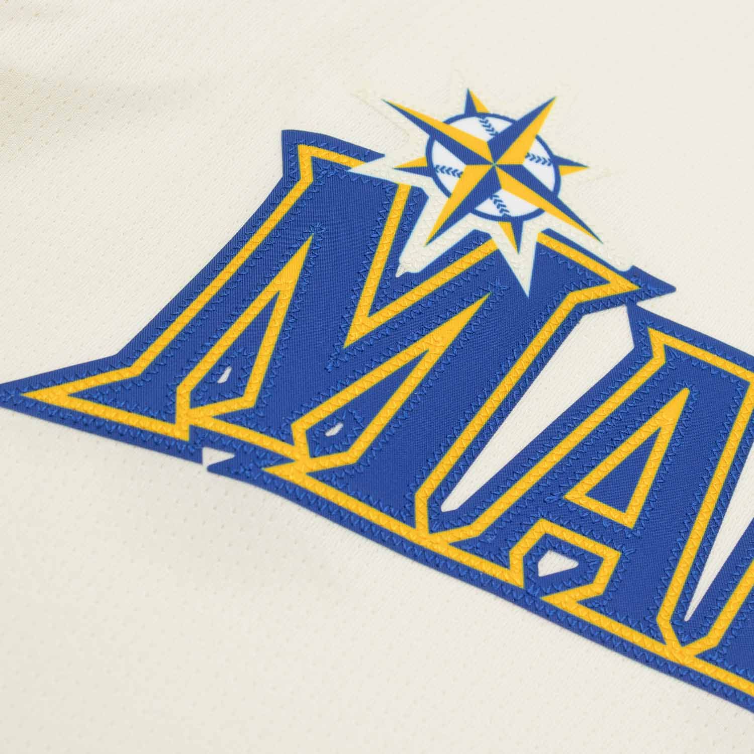 This official Seattle Mariners Alternate 2 Jersey brings together authentic MLB style and high-performance technology-just like the one your favorite players wear on the field. Featuring a classic cream design, bold Mariners lettering across the chest, and the iconic team sleeve patch, this jersey is a must-have for fans who want to represent their team with pride.