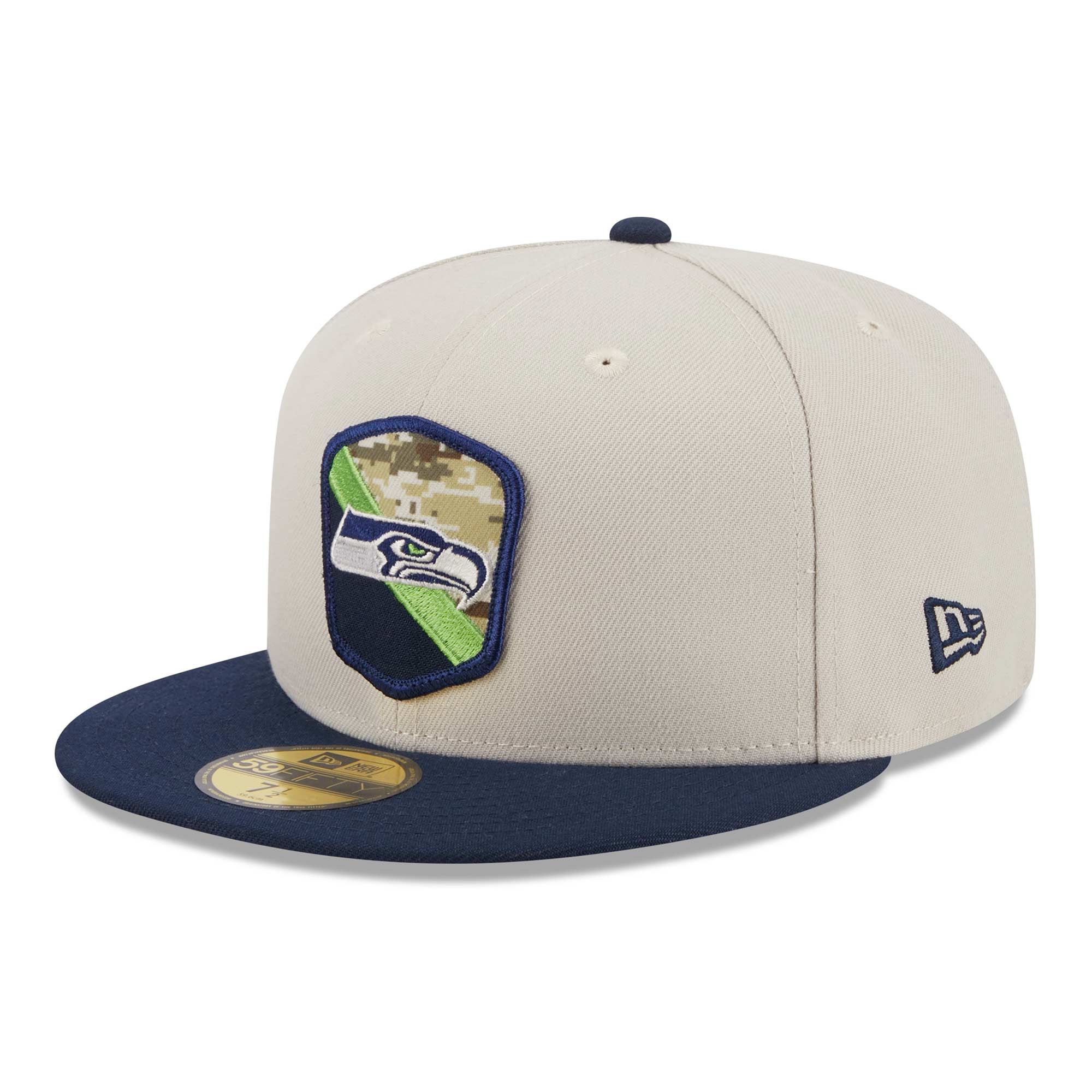New Era Official On-Field 2023 NFL Salute to Service Edition American Football 59FIFTY fitted Cap from your Seattle Seahawks.