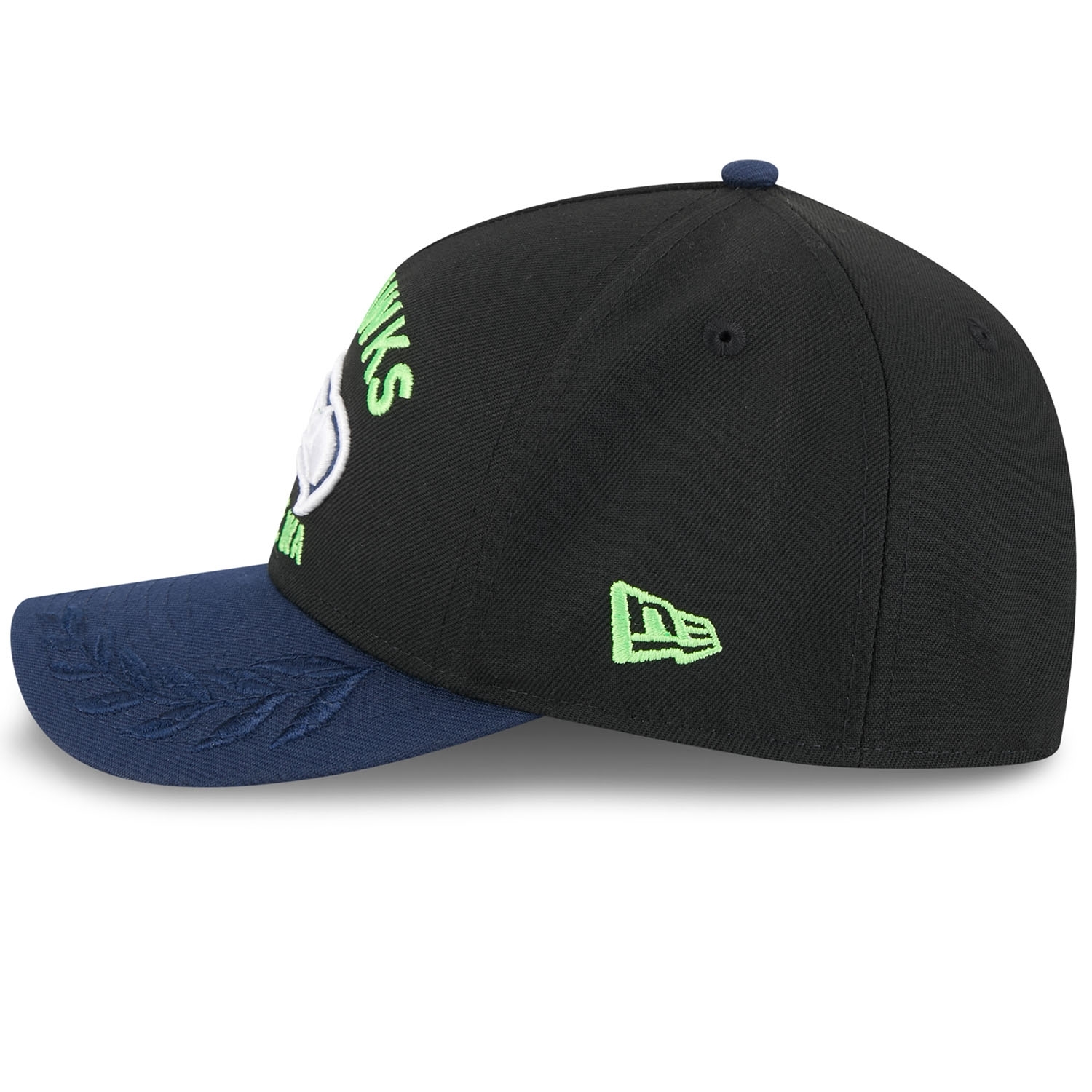 "Seattle Seahawks 2025 NFL Draft 9FORTY M-Crown A-Frame Snapback Cap Black"