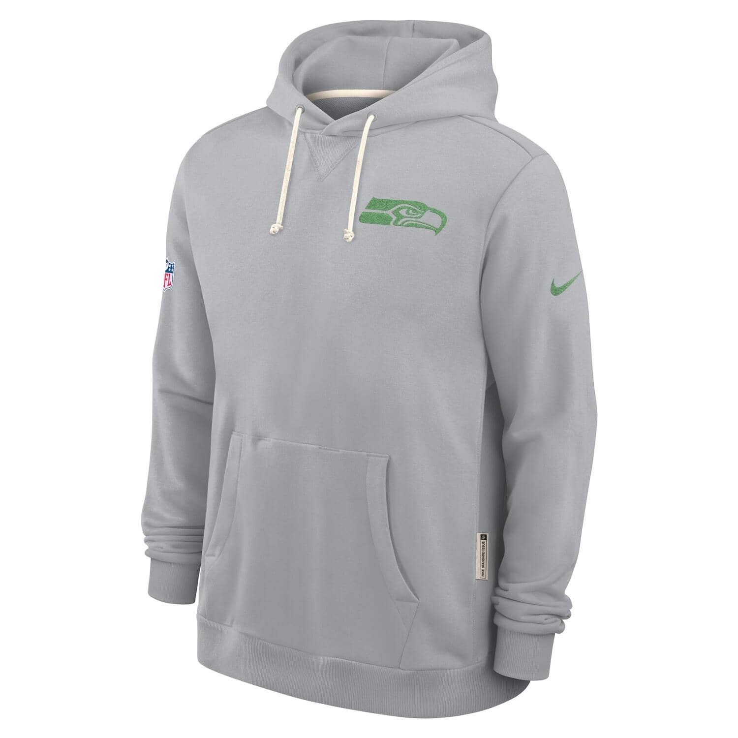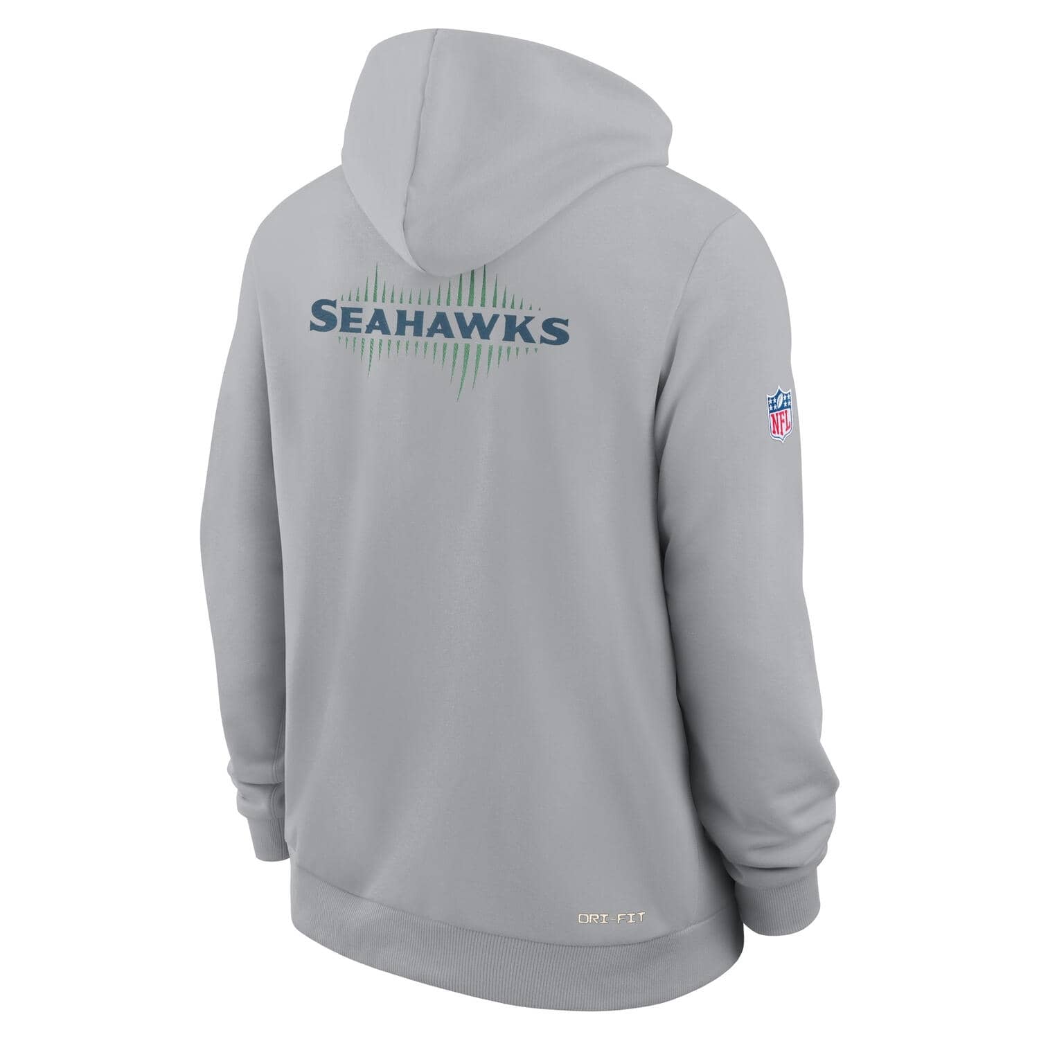 Show your true Rivalry spirit with the Nike Seattle Seahawks Hoodie from the 2025 Rivalries Collection! The all-gray design with Seahawks logo with metallic accents celebrates the franchise's storied legacy. Featuring soft fleece with Dri-FIT technology for warmth and moisture management, plus functional details like dolman sleeves and an extra zip pocket, this hoodie delivers both performance and style. Part of the official NFL On-Field Sideline Collection - made for all Seahawks fans!