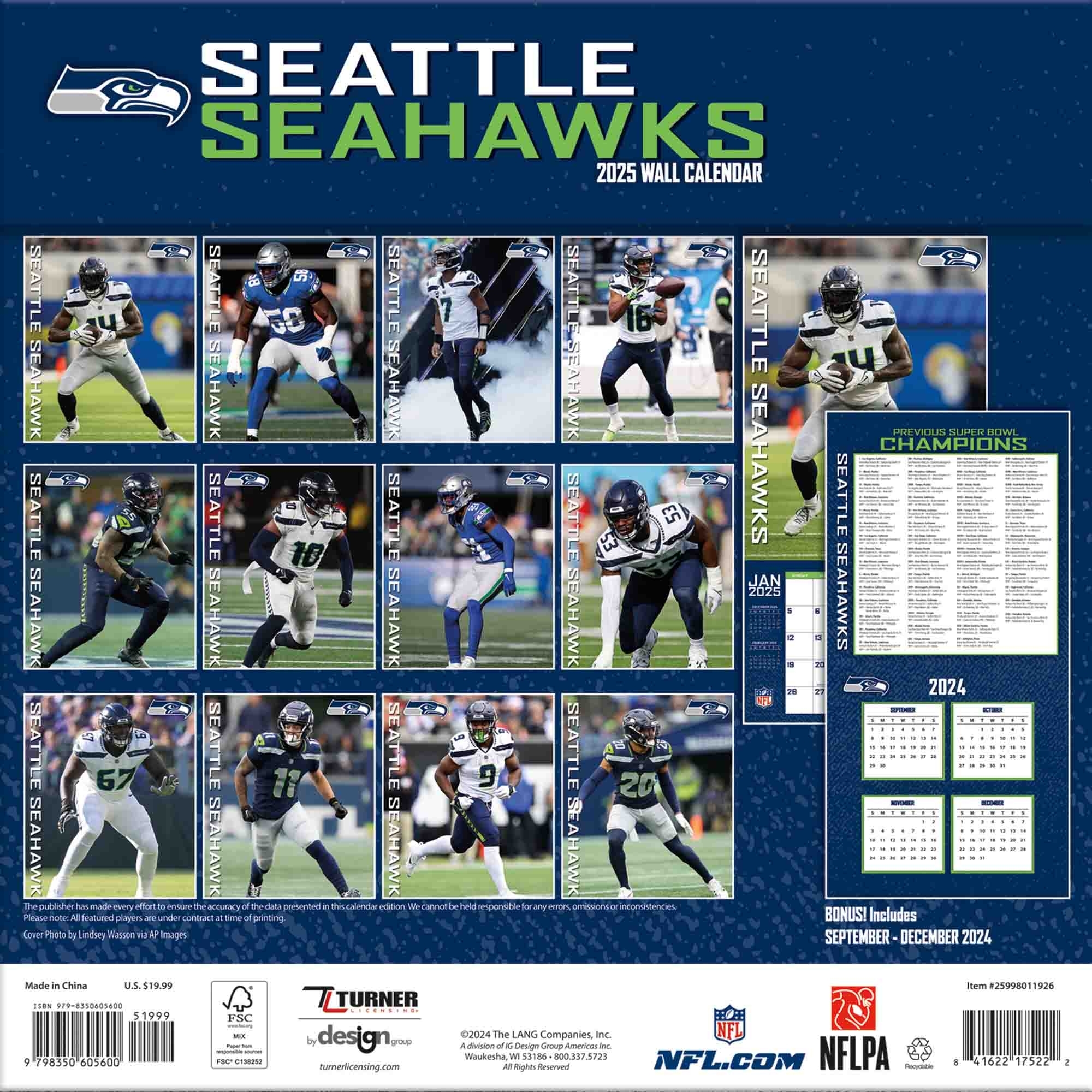 Turner Licensing NFL 2025 Wall Calendar from your Seattle Seahawks.