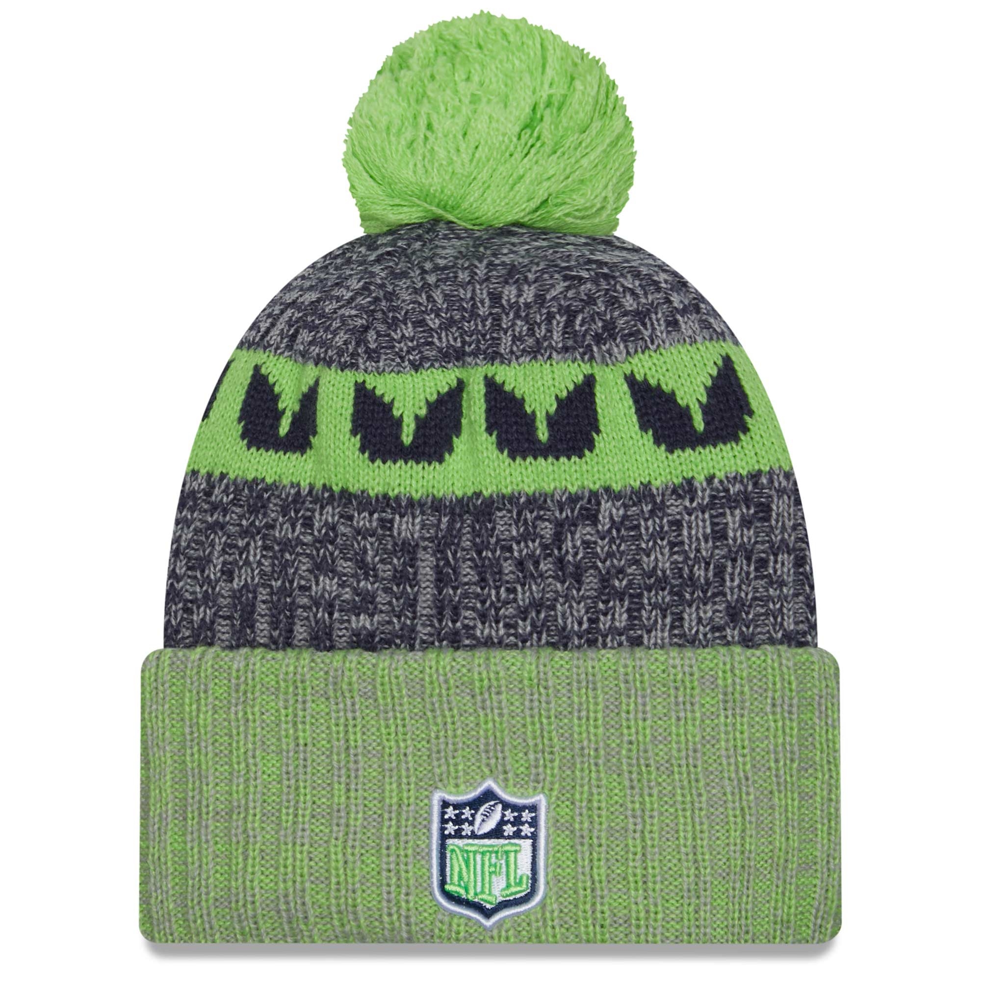 New Era American Football Knit Hat with Pom from your Seattle Seahawks. Part of the Colorway 2023 NFL Sideline Collection.