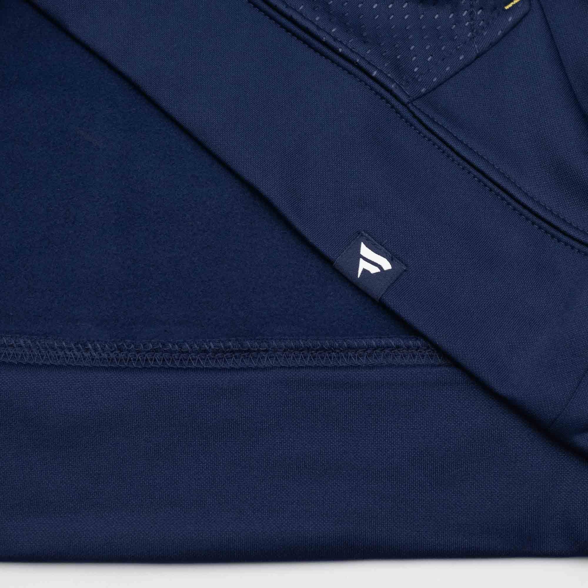 This sweatshirt ensures optimal wearing comfort with a large kangaroo front pocket, hood, and cozy fleece interior. The performance polyester offers sweat-wicking properties, so the hoodie also looks fine during workouts.