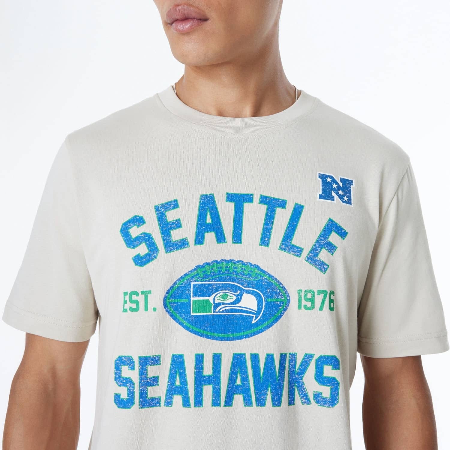 Show your support for the Seattle Seahawks with the New Era American Football T-Shirt, inspired by the exclusive 2024 Throwback Sideline Cap Collection.