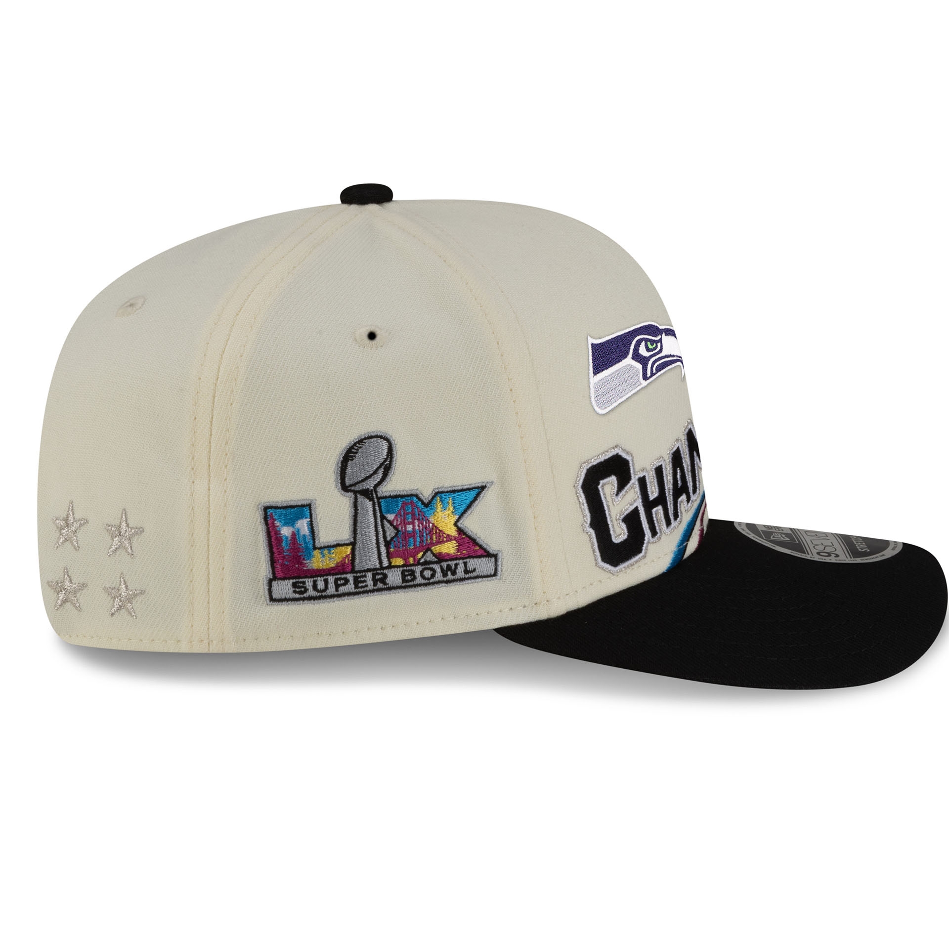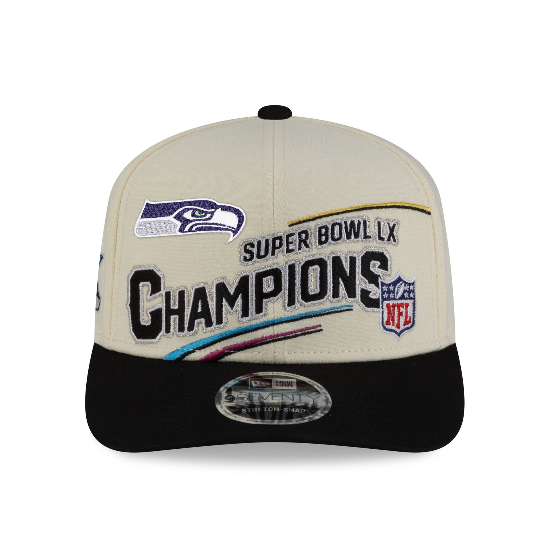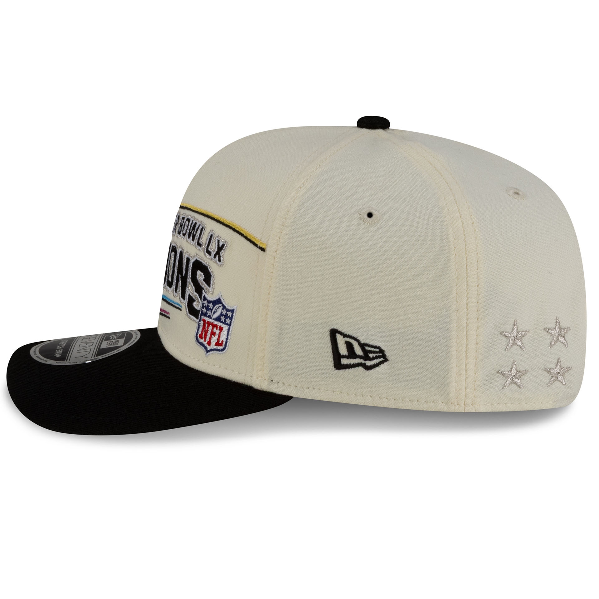 New Era NFL 9SEVENTY Stretch-Snap Adjustable Hat from the Super Bowl LX Champions.