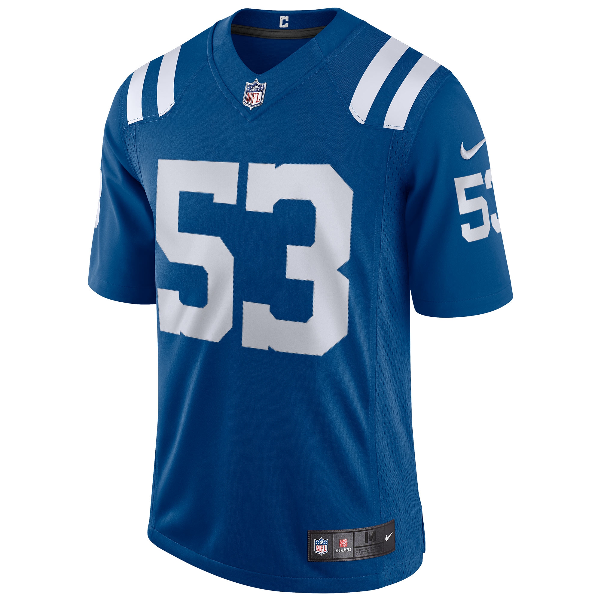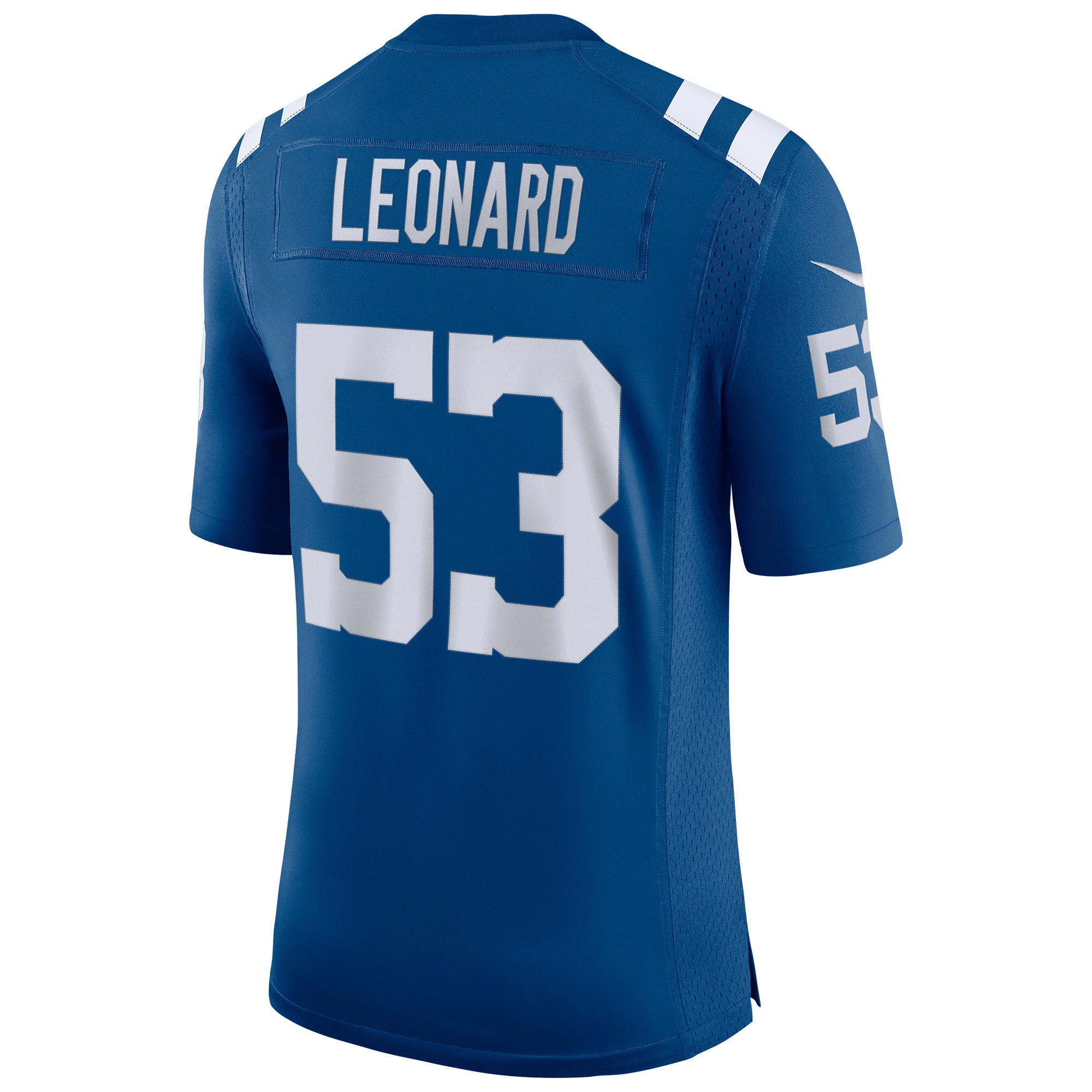 Rep your favorite team and player anytime in the NFL Speed Machine Limited Jersey, inspired by what the Indianapolis Colts are wearing on the field and designed for total comfort. Highly flexible twill numbers add premium style. High quality stitched LEONARD #53 letters, numbers, and logos. Strategic ventilation for breathability. Woven jock tag at front lower left, chainmail mesh grill at front neck and back seam lines inspired by the authentic on-field jersey. Nike Dry fabrics move sweat from your skin for quicker evaporation - helping you stay dry, comfortable, and focused on the task at hand.