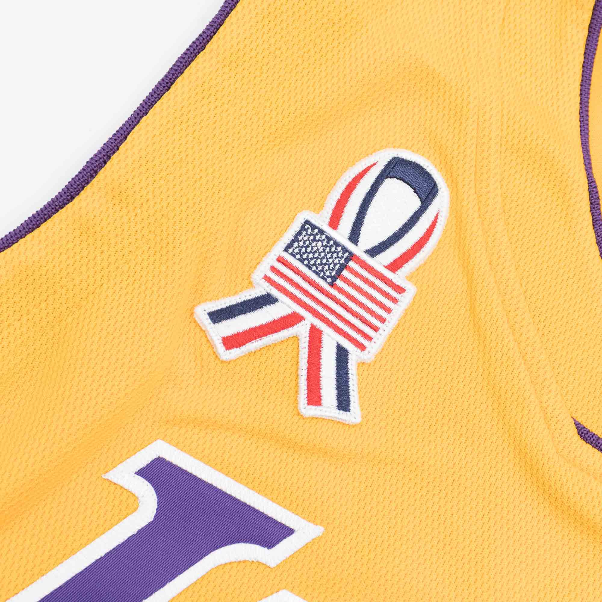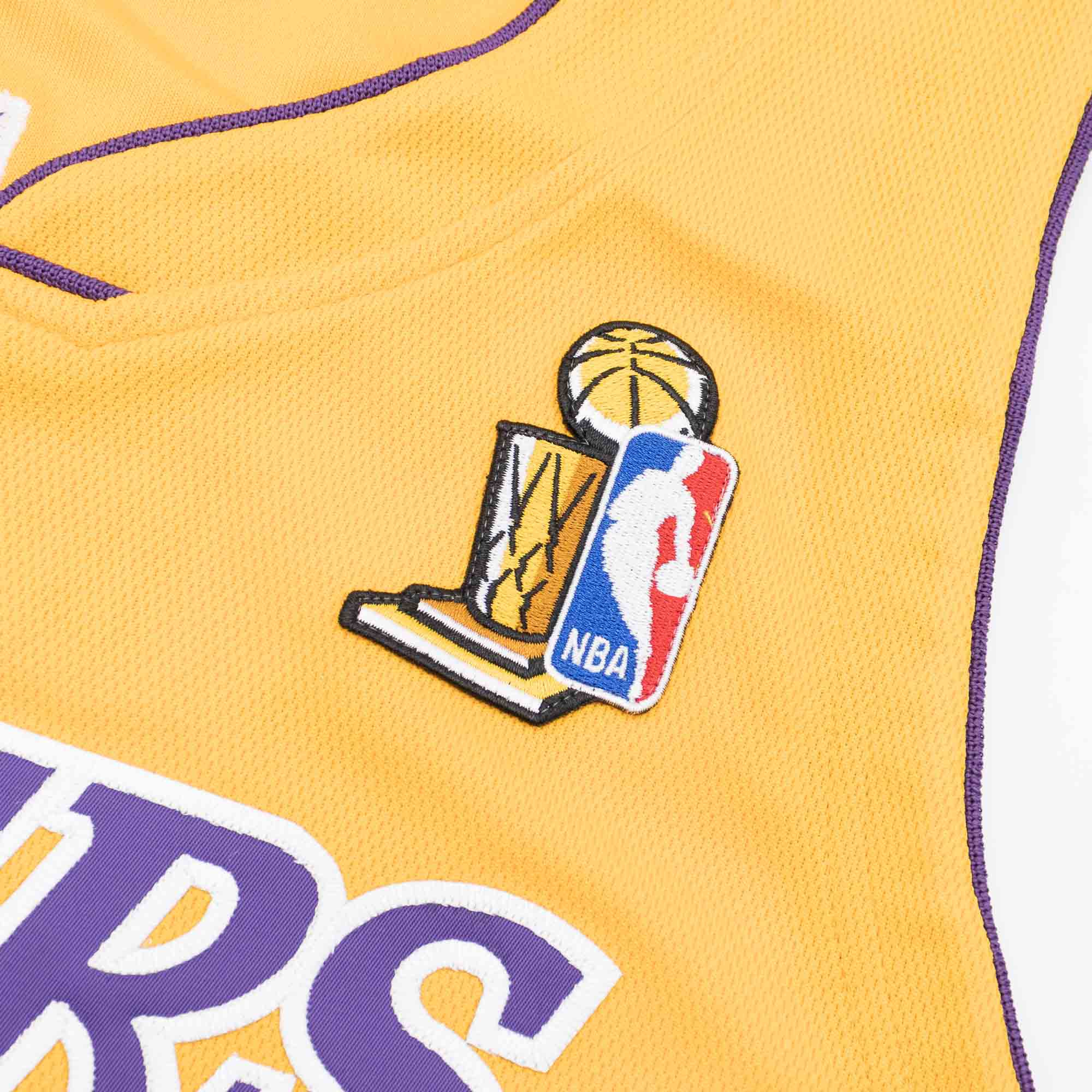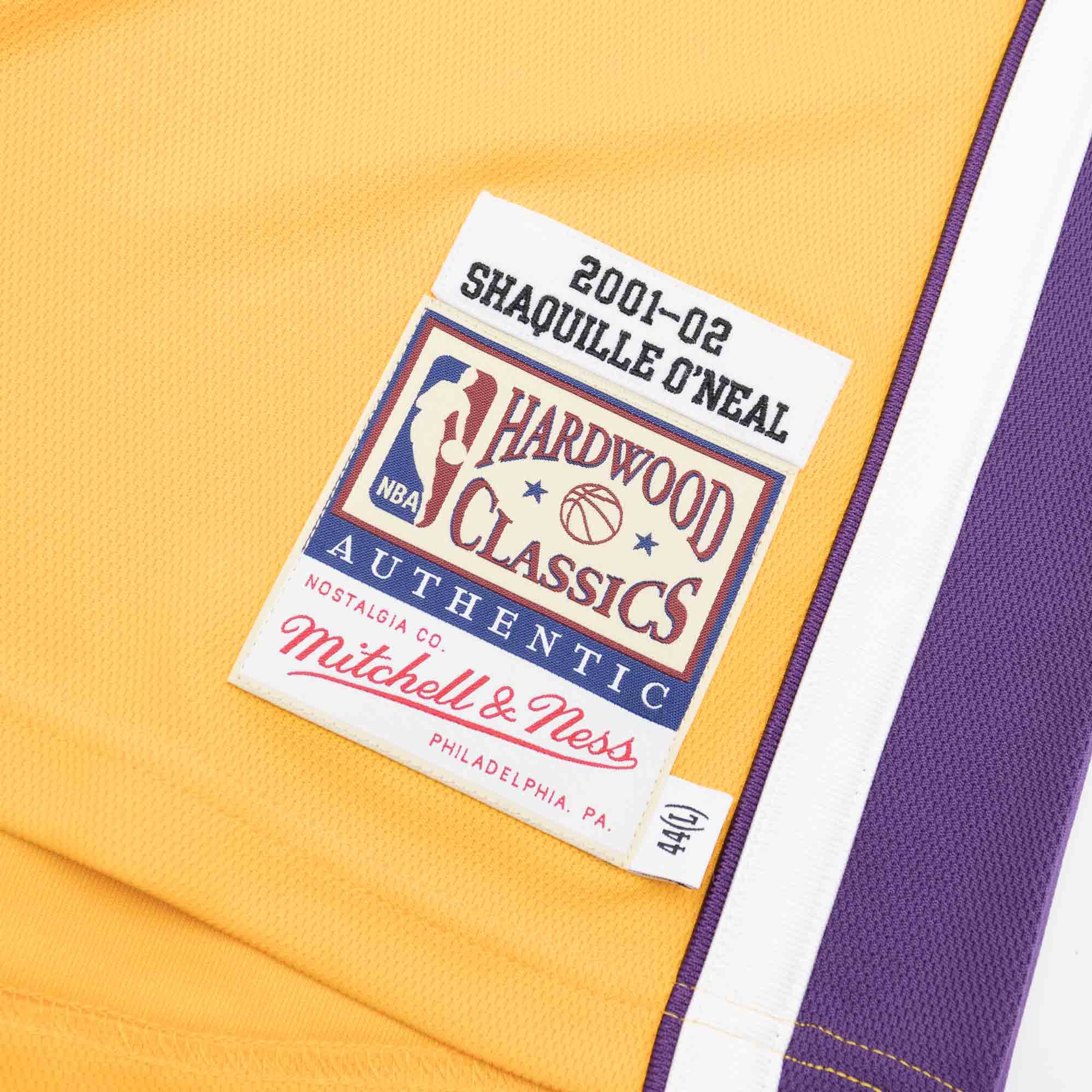 Mitchell and Ness NBA Men's 2001-02 Authentic Basketball Jersey from Los Angeles Lakers Legend Shaquille O'Neal. With NBA Finals and 9/11 Patch.