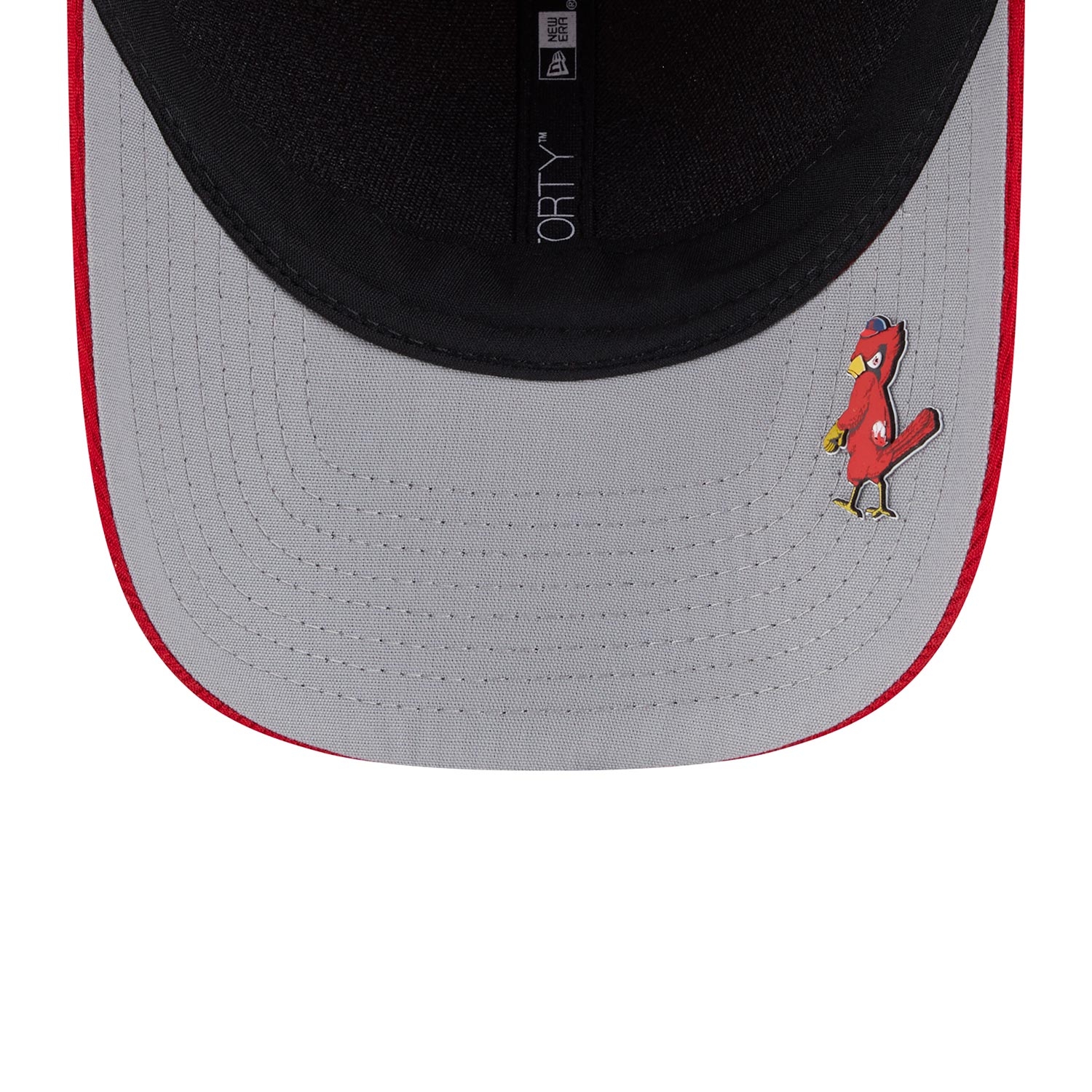 New Era Baseball Official 2025 MLB Clubhouse Collection 9FORTY M-Crown Adjustable Snapback Hat from the St. Louis Cardinals.