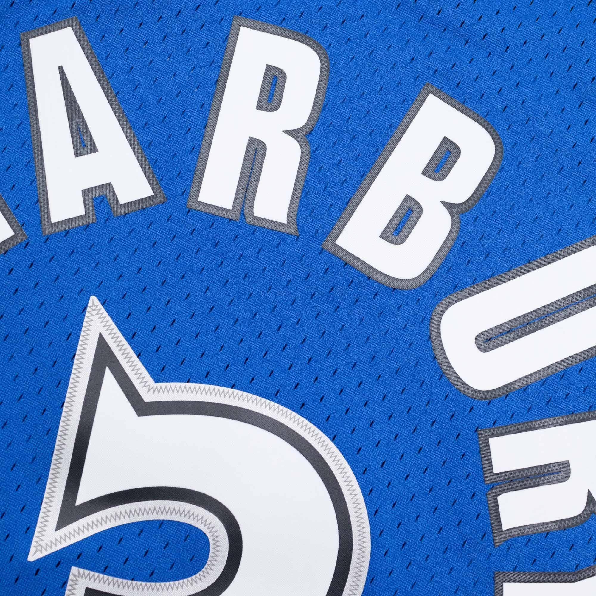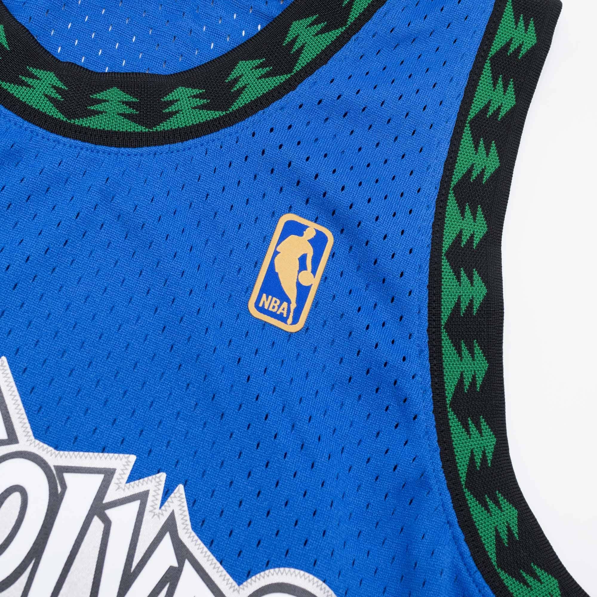 Rep your favorite team and player anytime in the NBA Swingman Hardwood Classics Jersey, replicating what the Minnesota Timberwolves have worn on the court during that era. With heat seal screen printed twill logo, name and number applications. The body is made from 100% polyester mesh. Woven Hardwood Classics-Mitchell & Ness jocktag at front lower left.