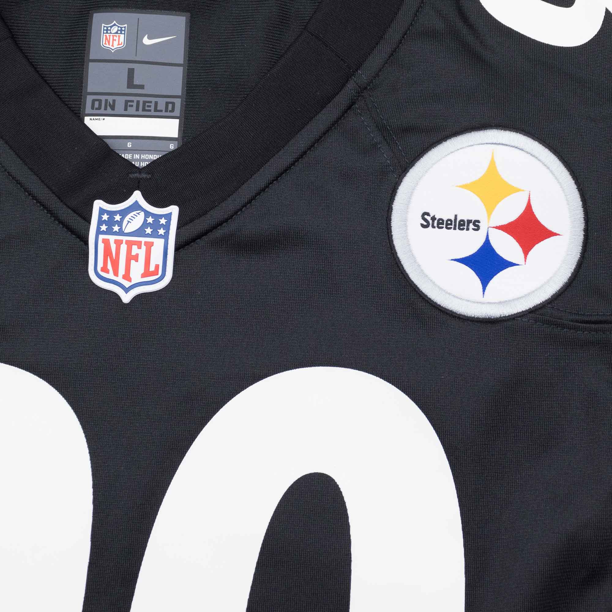 Rep your favorite team and player anytime in the NFL Game Jersey, inspired by what they're wearing on the field and designed for total comfort. The jersey features screen-printed TJ Watt Pittsburgh Steelers graphics letting everyone know who you cheer for: Steel Curtain! Featuring strategic ventilation for breathability, woven jock tag at front lower left, NFL shield at V-neck.