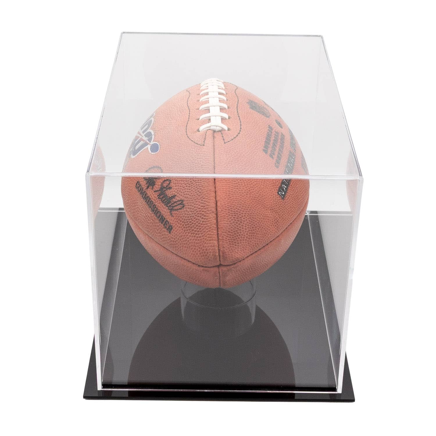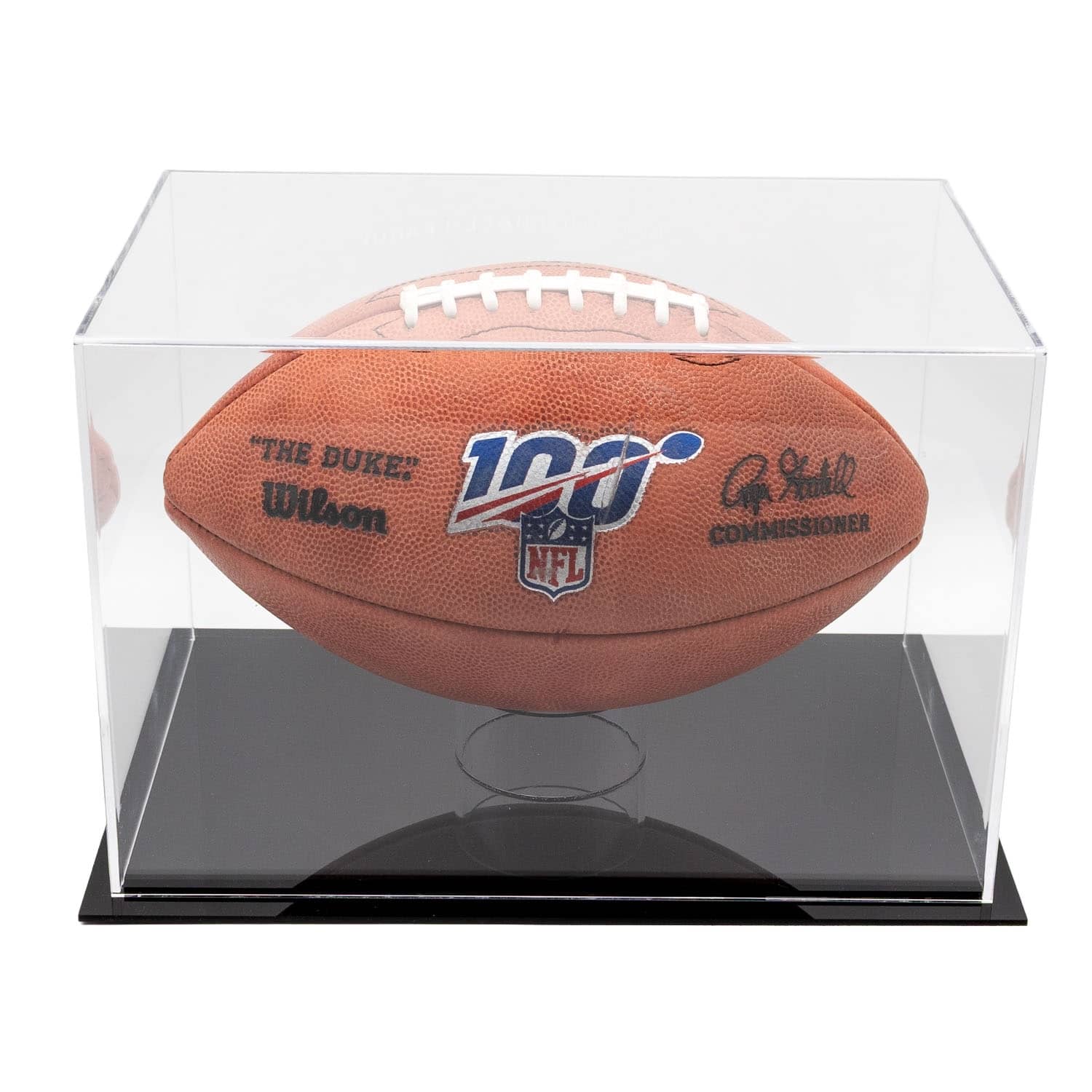 The TAASS.com Acrylic Football Display Case offers crystal-clear visibility, UV protection, and a secure stand.