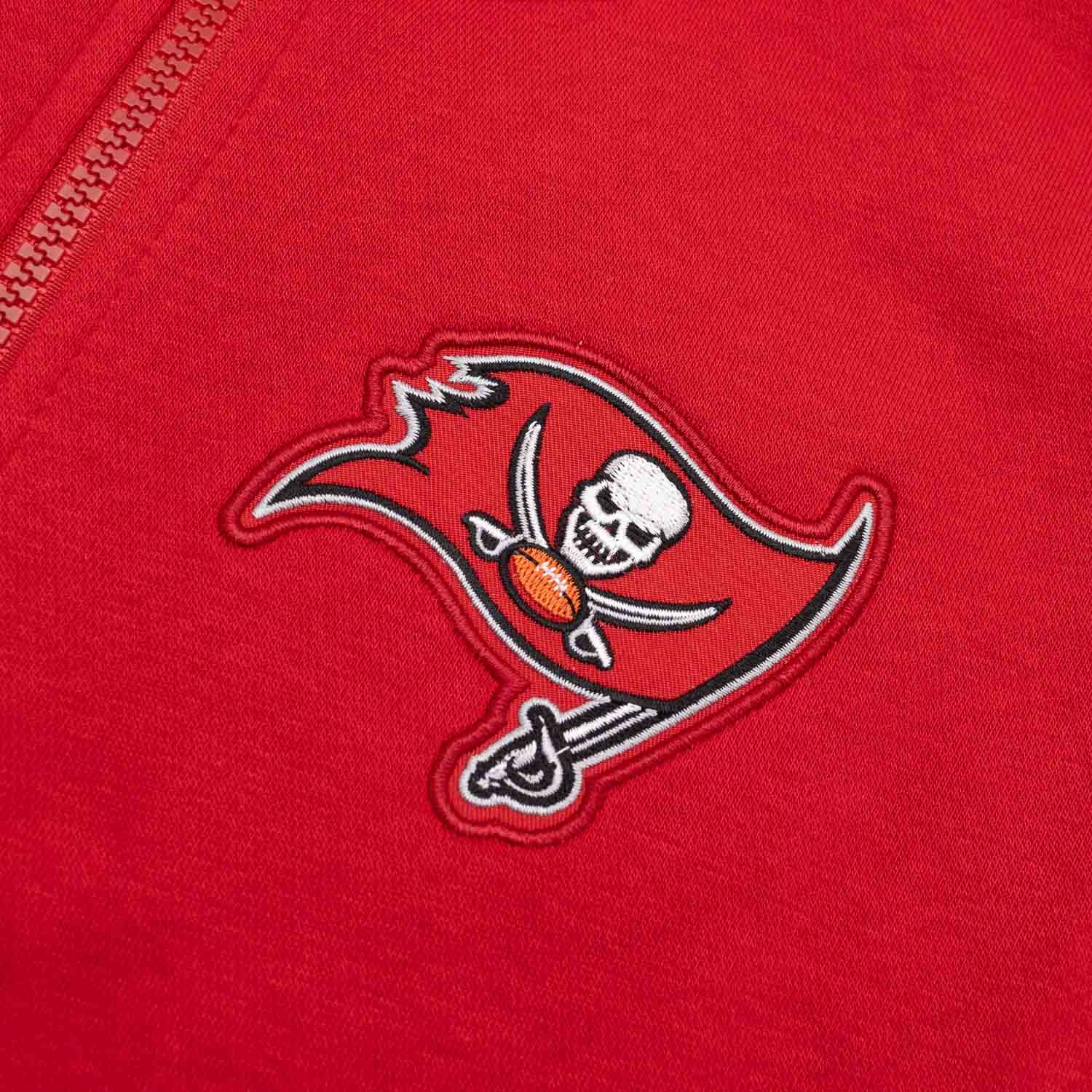 - Bold Design: Featuring contrasting drawstrings and inner hood lining. The embroidered Buccaneers logo stands out on the chest, complemented by printed team details on the sleeve, including the helmet logo and team insignia.