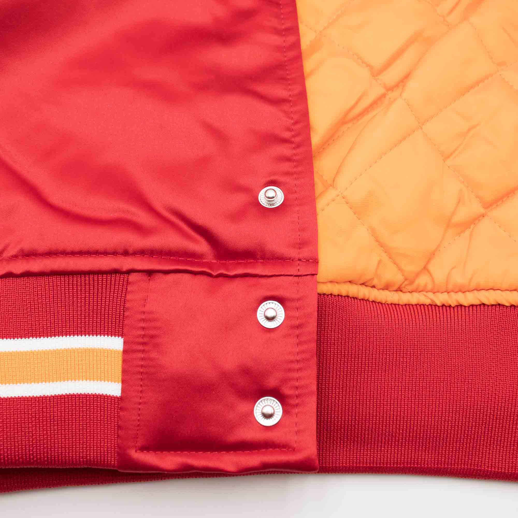 Crafted from high-quality satin, this jacket is fully lined with quilted polyester taffeta for unbeatable warmth and comfort. With two front pockets, an inside pocket, and full front snap closure, this jacket has everything you need for game day or everyday wear.