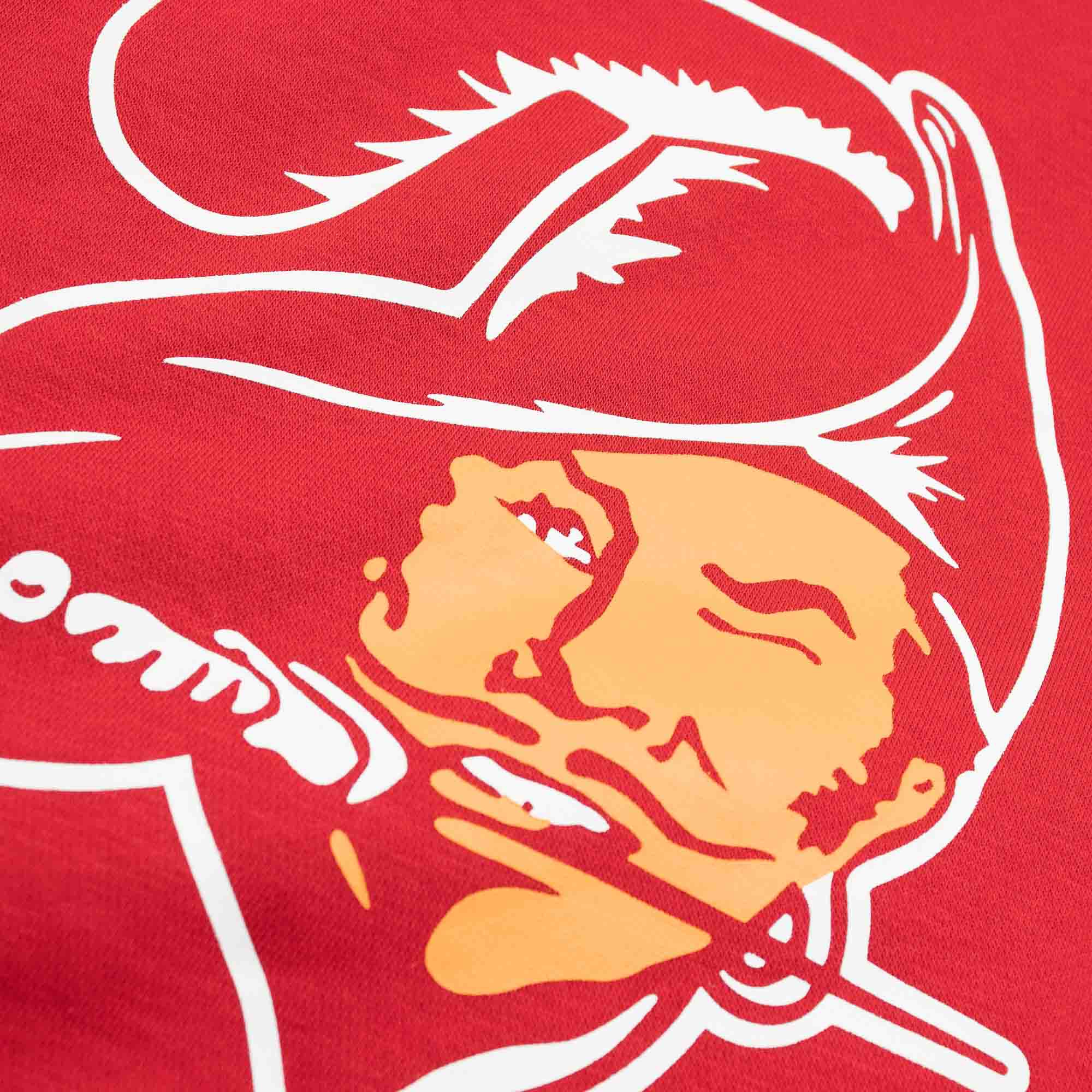 Throwback Football! Celebrate the good old times with the classic NFL look. This Nike pullover hood features rewind Tampa Bay Buccaneers team logo decoration on front. With vintage Nike Swoosh print on left sleeve. Show your long-standing team support with this NFL sweater!