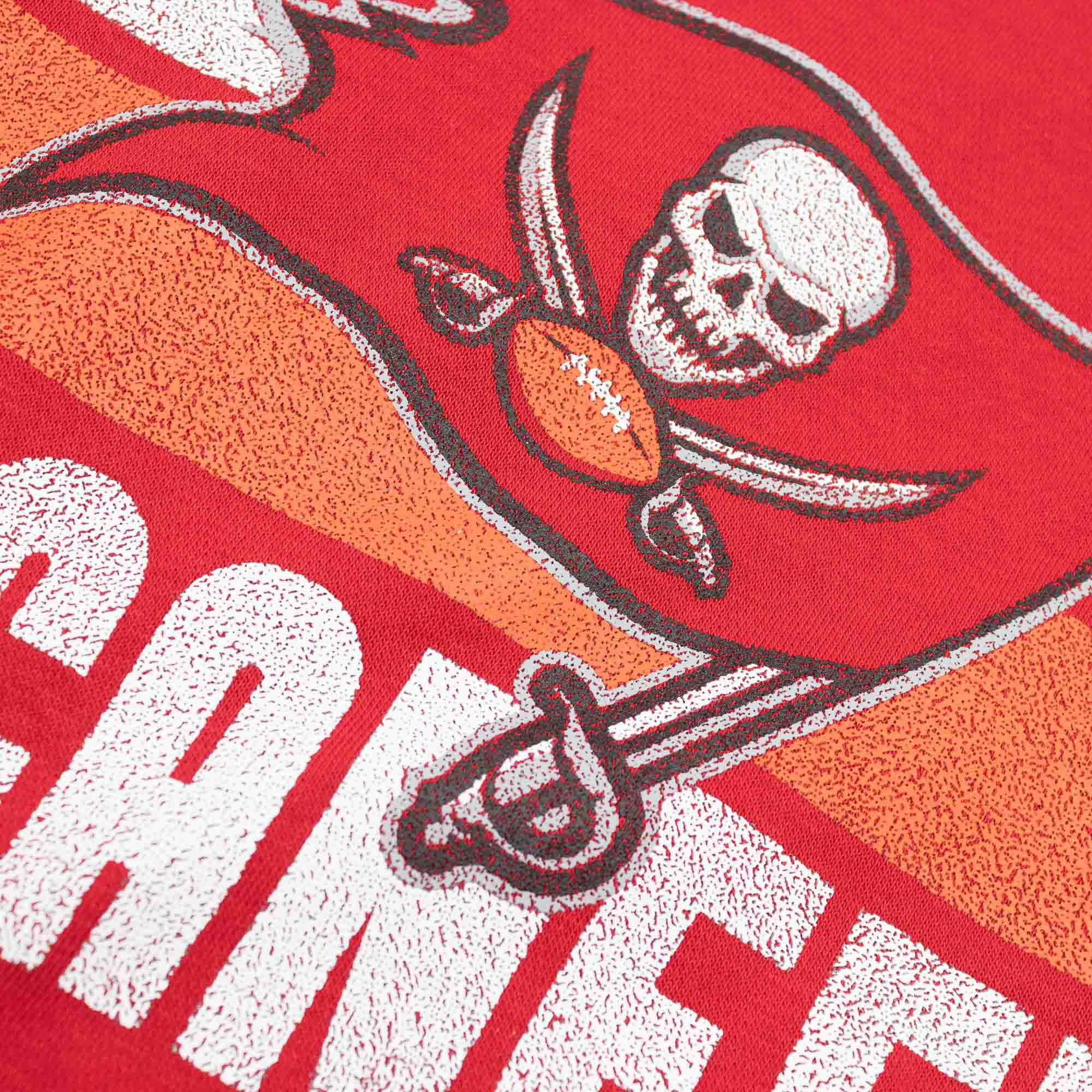 This Nike NFL sweater comes in the official team colors and features a beautiful Buccaneers team stripes logo front print. The washed-out logo print offers a stylish look on NFL gamedays. With Nike Swoosh logo on left sleeve.