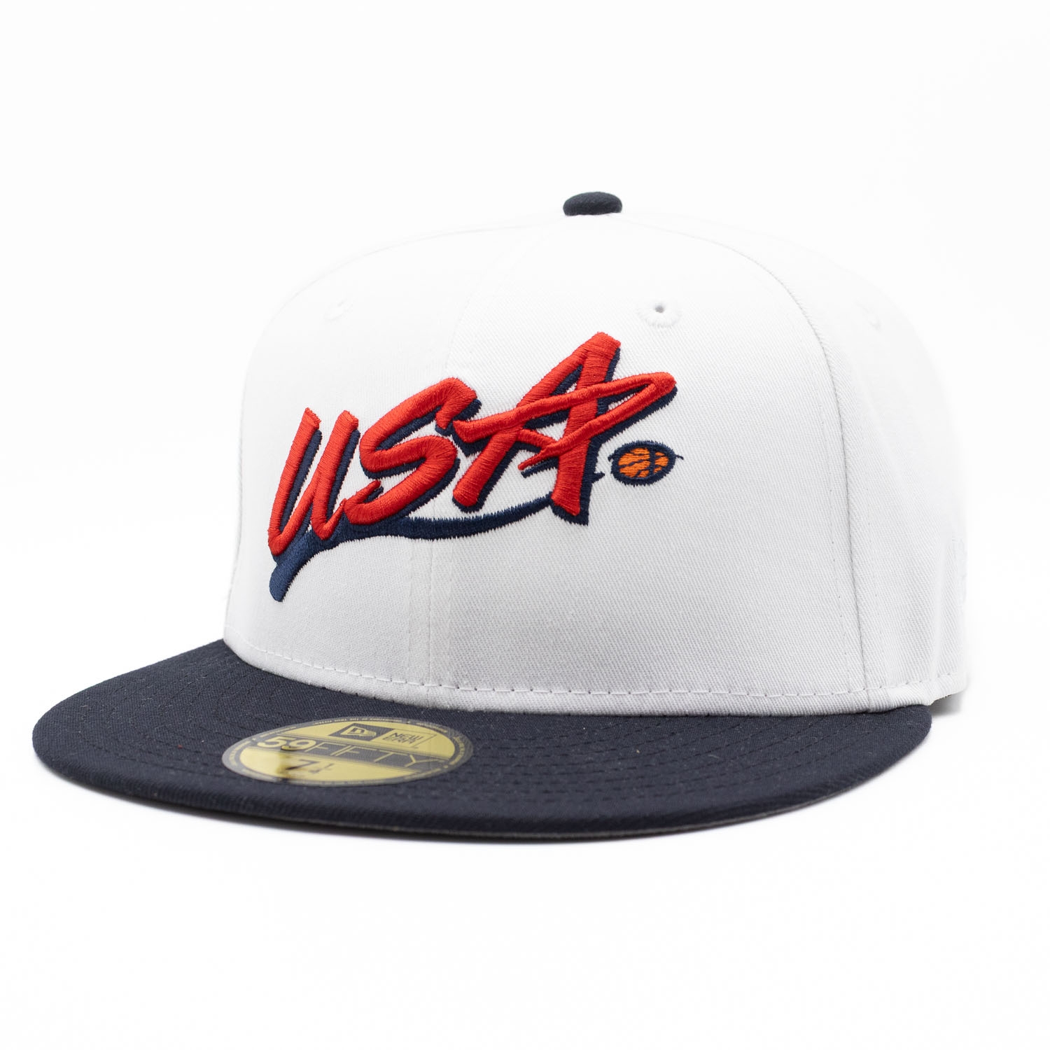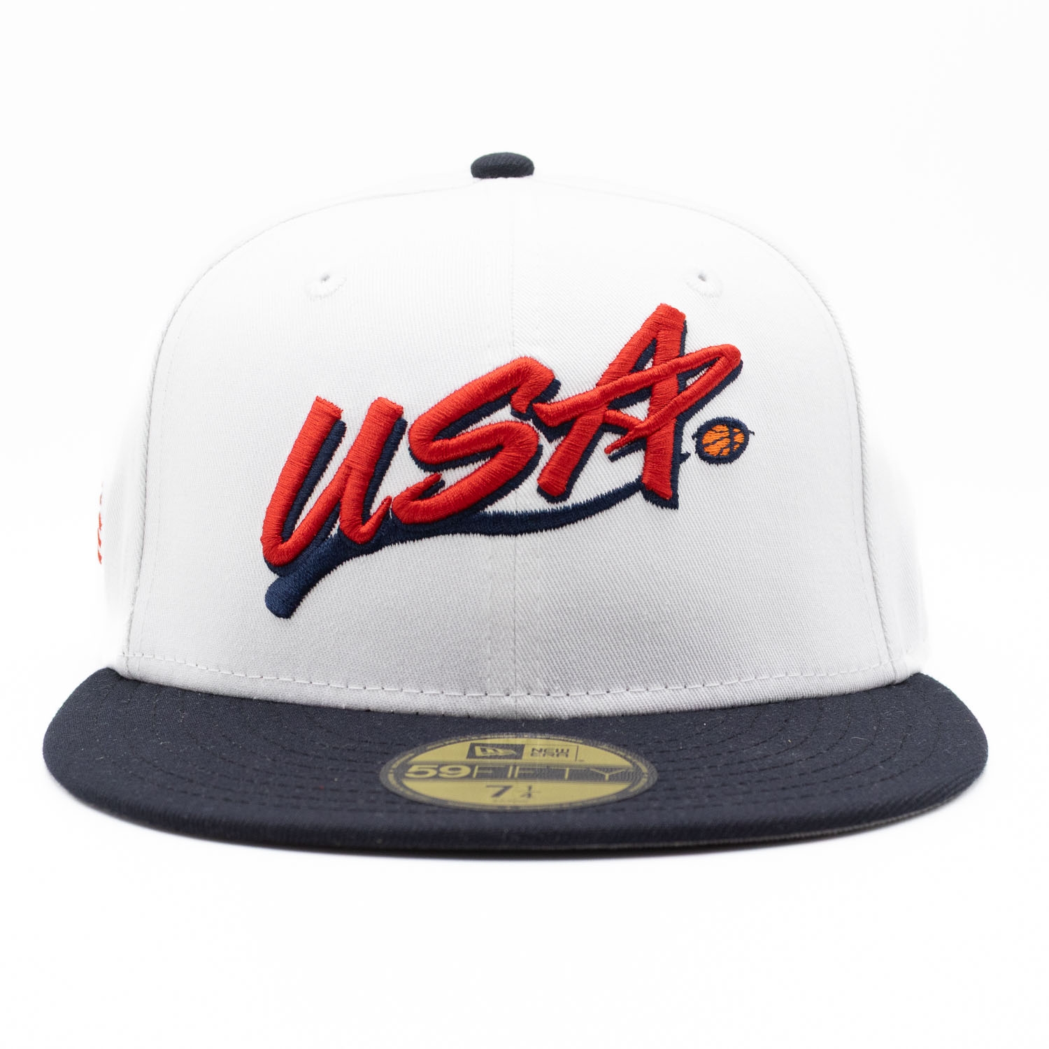 New Era Basketball 59FIFTY Fitted Hat from Team USA with US Flag Side Patch.