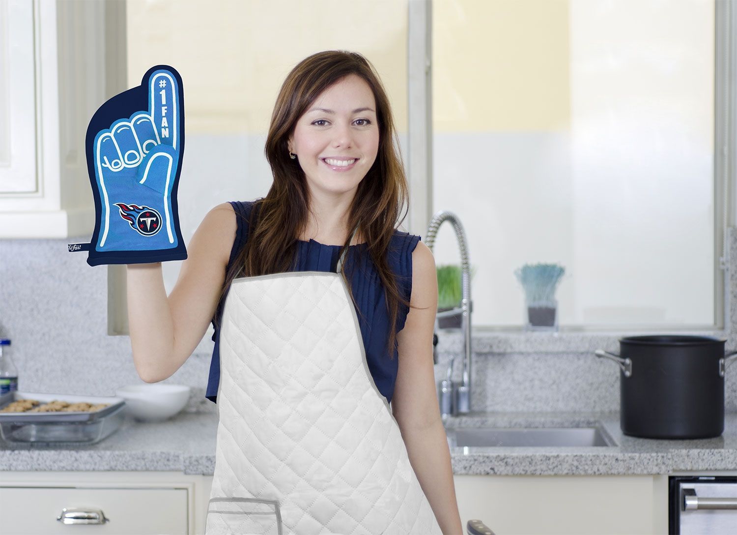 The Tennessee Titans #1 Fan Oven Mitt is a premium, heat-resistant 100% quilted cotton oven mitt that is ideal for both the oven and the grill. The exclusive #1 Fan design takes the iconic image of the foam finger and the team logo and creates a one-of-a-kind oven mitt that can handle the heat in style. The #1 Oven Mitt makes an unforgettable gift that will remind everyone that team spirit should never be put on the back burner.