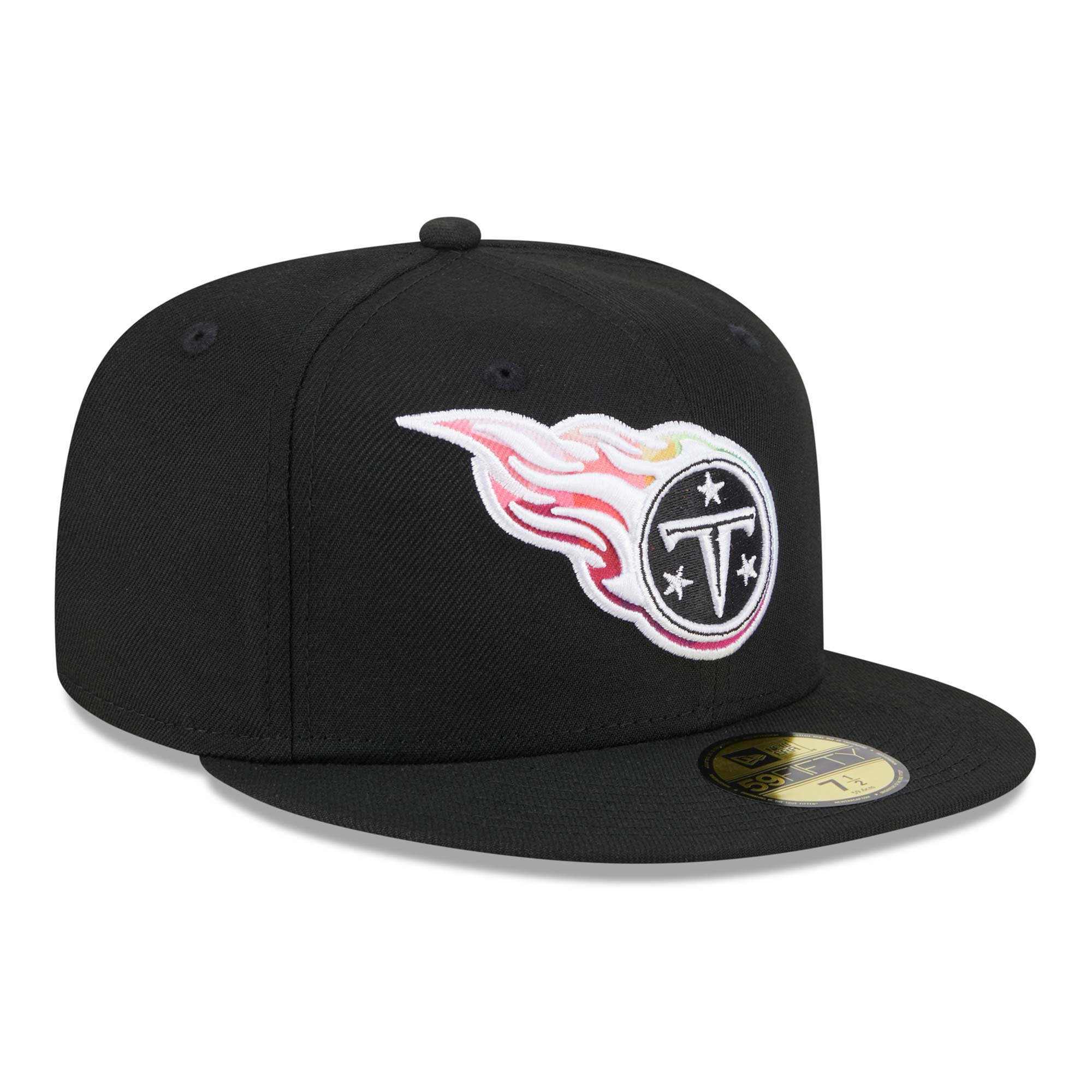 Support the fight against cancer with this official On-Field 2023 NFL Crucial Catch Sideline Hat by New Era. The Tennessee Titans Crucial Catch 59FIFTY Fitted Cap features an embroidered multi-color team logo at the front. With Crucial Catch Intercept Cancer patch on closed back.
