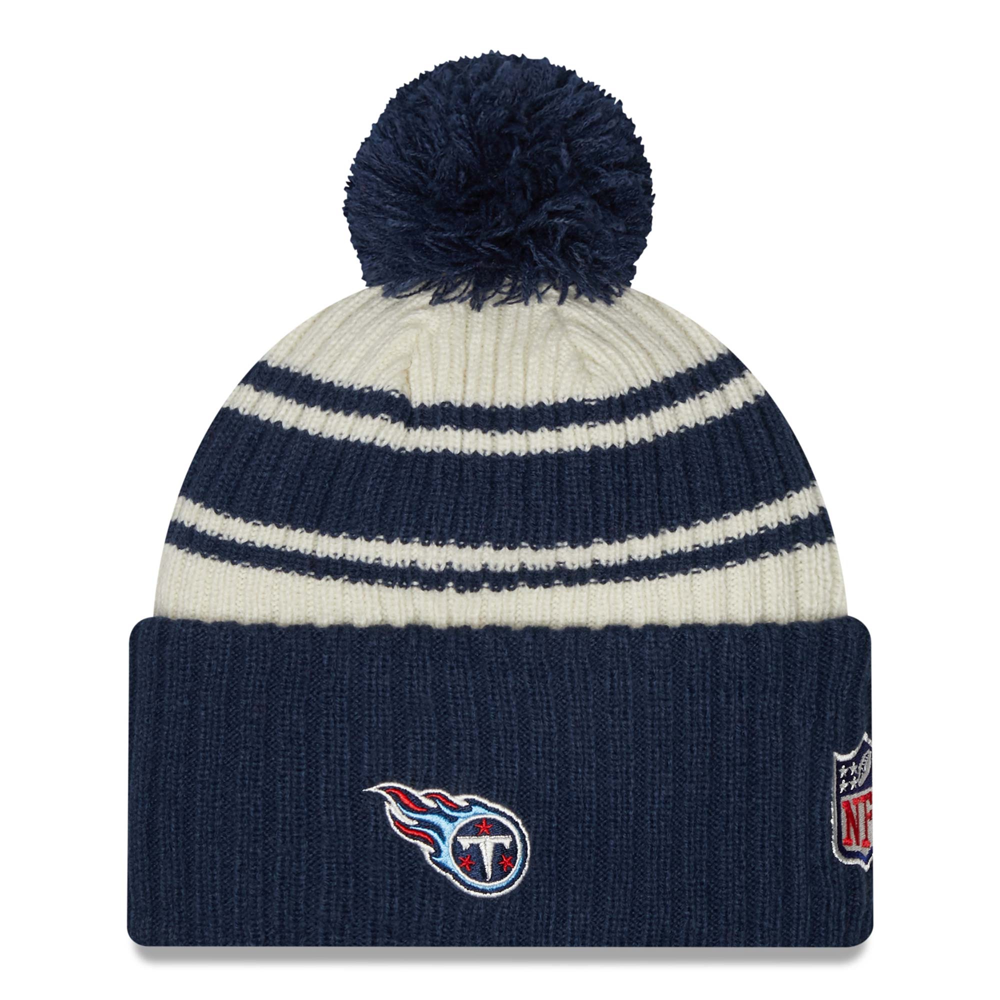 New Era American Football Knit Hat with Pom from your Tennessee Titans. Part of the official 2022 NFL Sideline Collection.