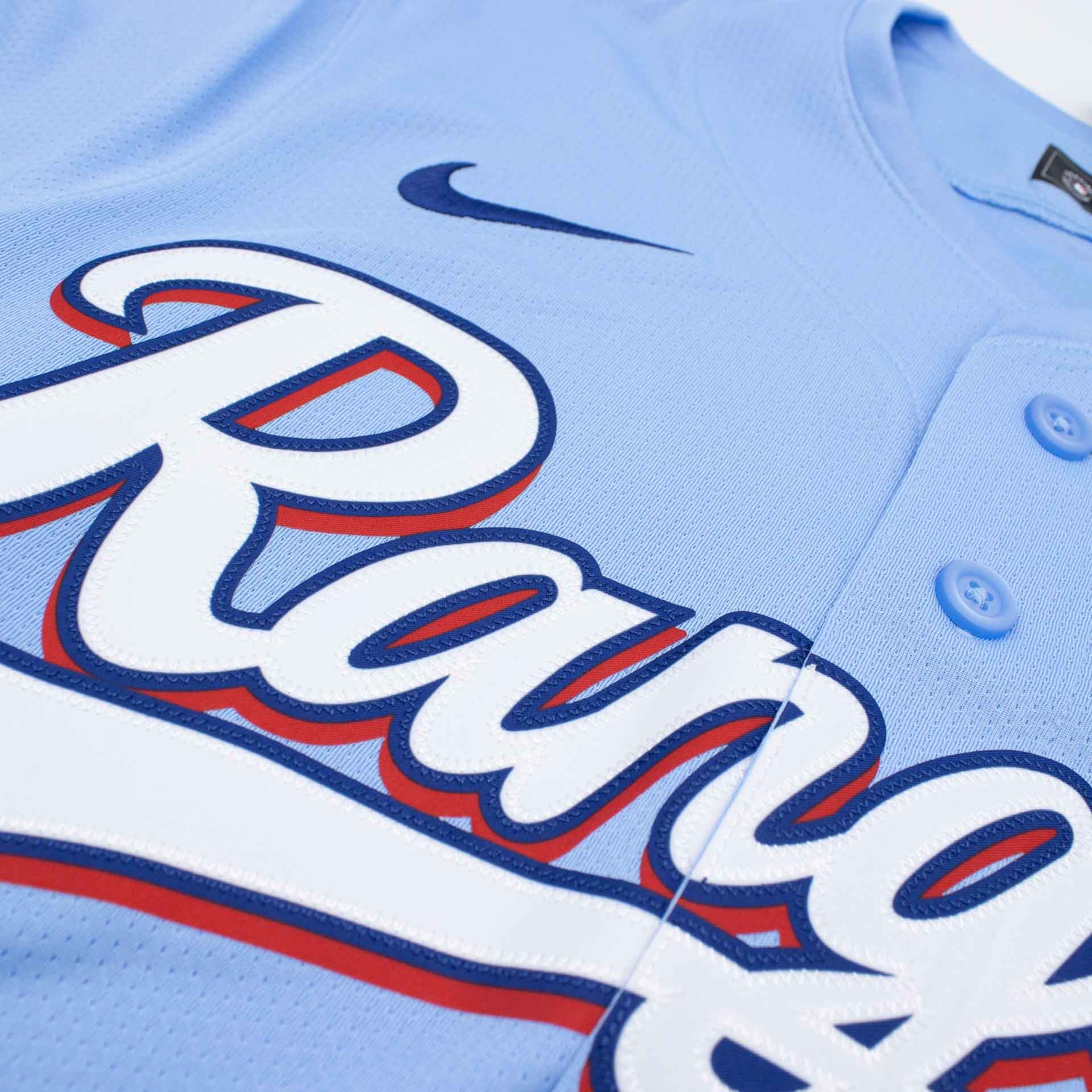 Nike MLB Men's Blue Alternate Dri-FIT Limited Baseball Jersey from your Texas Rangers.