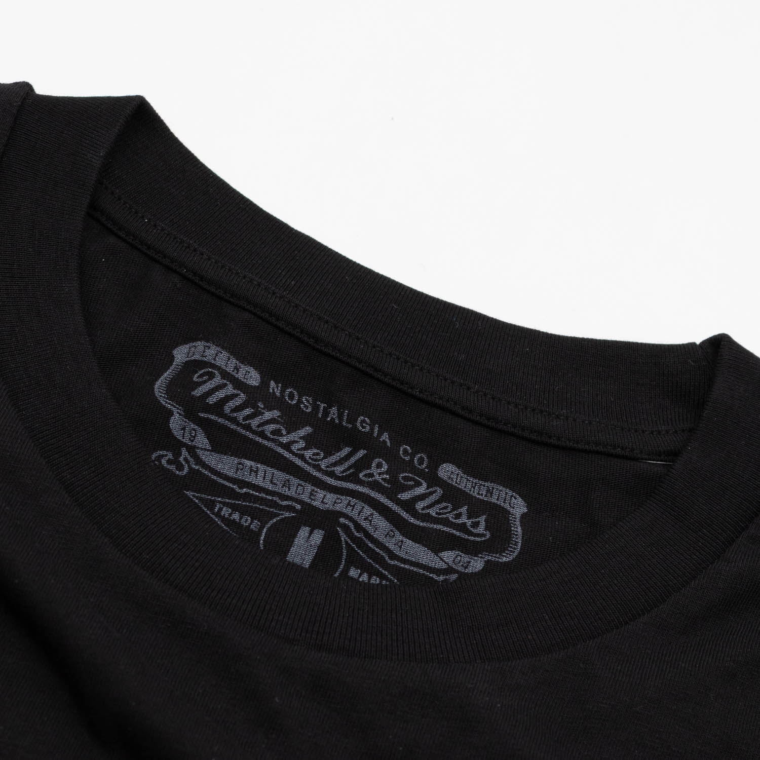 - Mitchell & Ness logo label at the hem.
