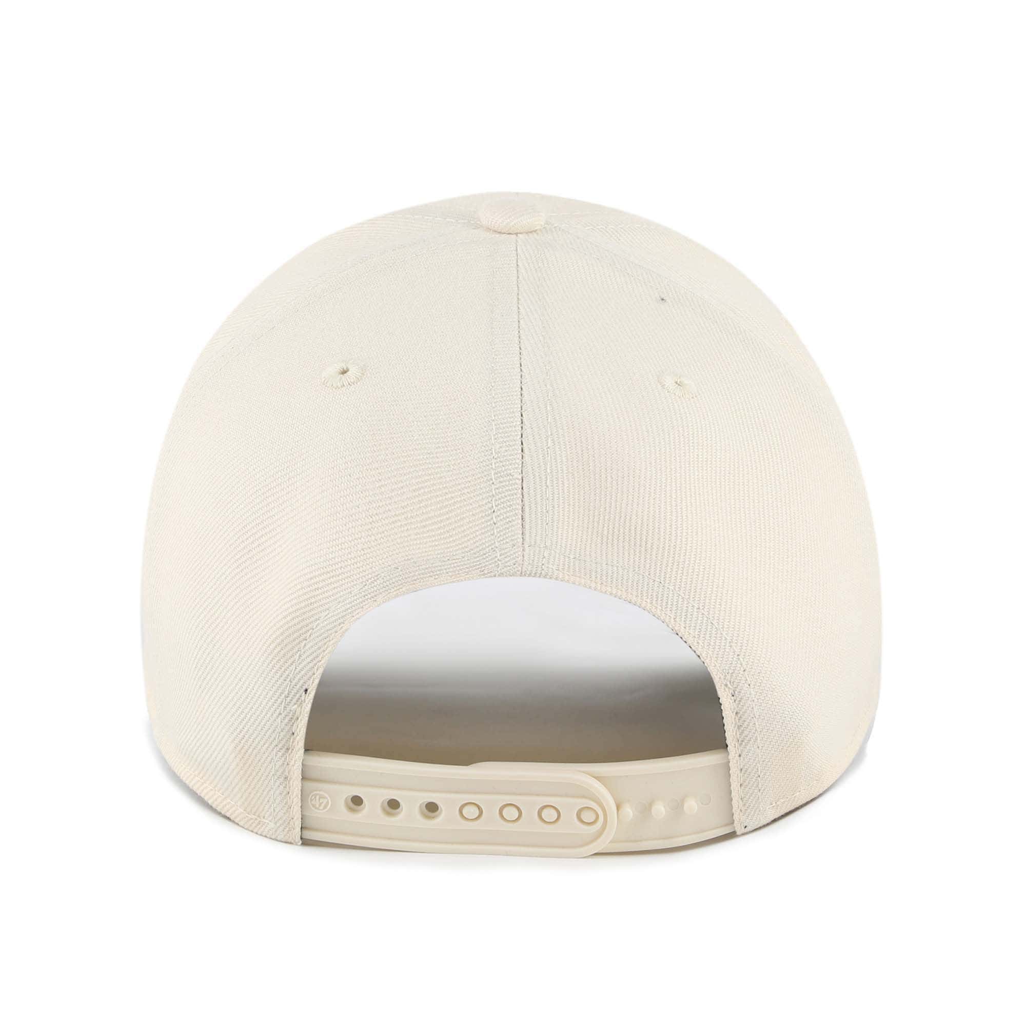 '47 Brand MVP fit with low, structured crown and curved brim. The six panel construction features breathable eyelets with a curved visor and button at top. '47 Brand logo on left side. Open back with adjustable snapback.