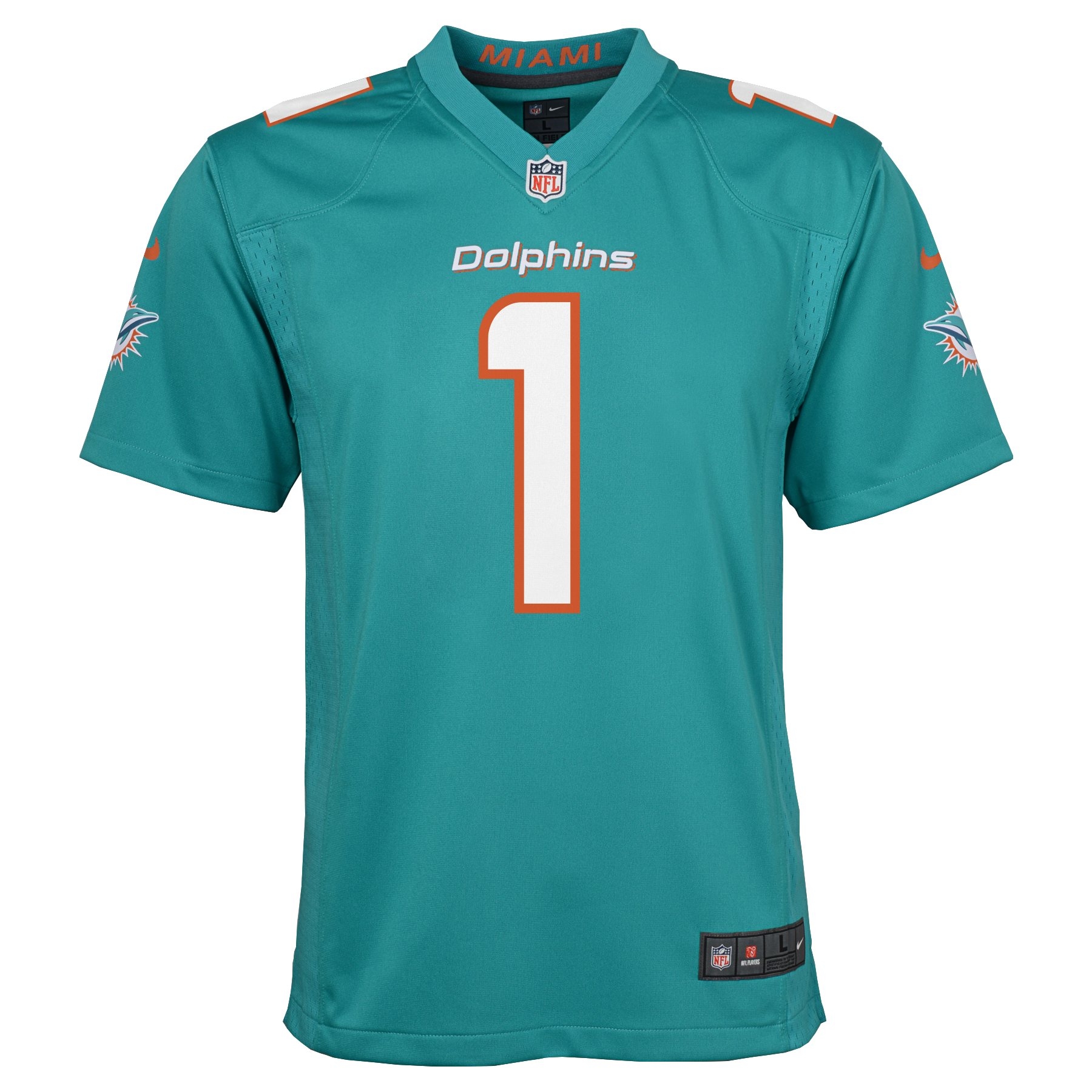 Nike NFL Youth Game American Football Jersey from Miami Dolphins Superstar Tua Tagovailoa.