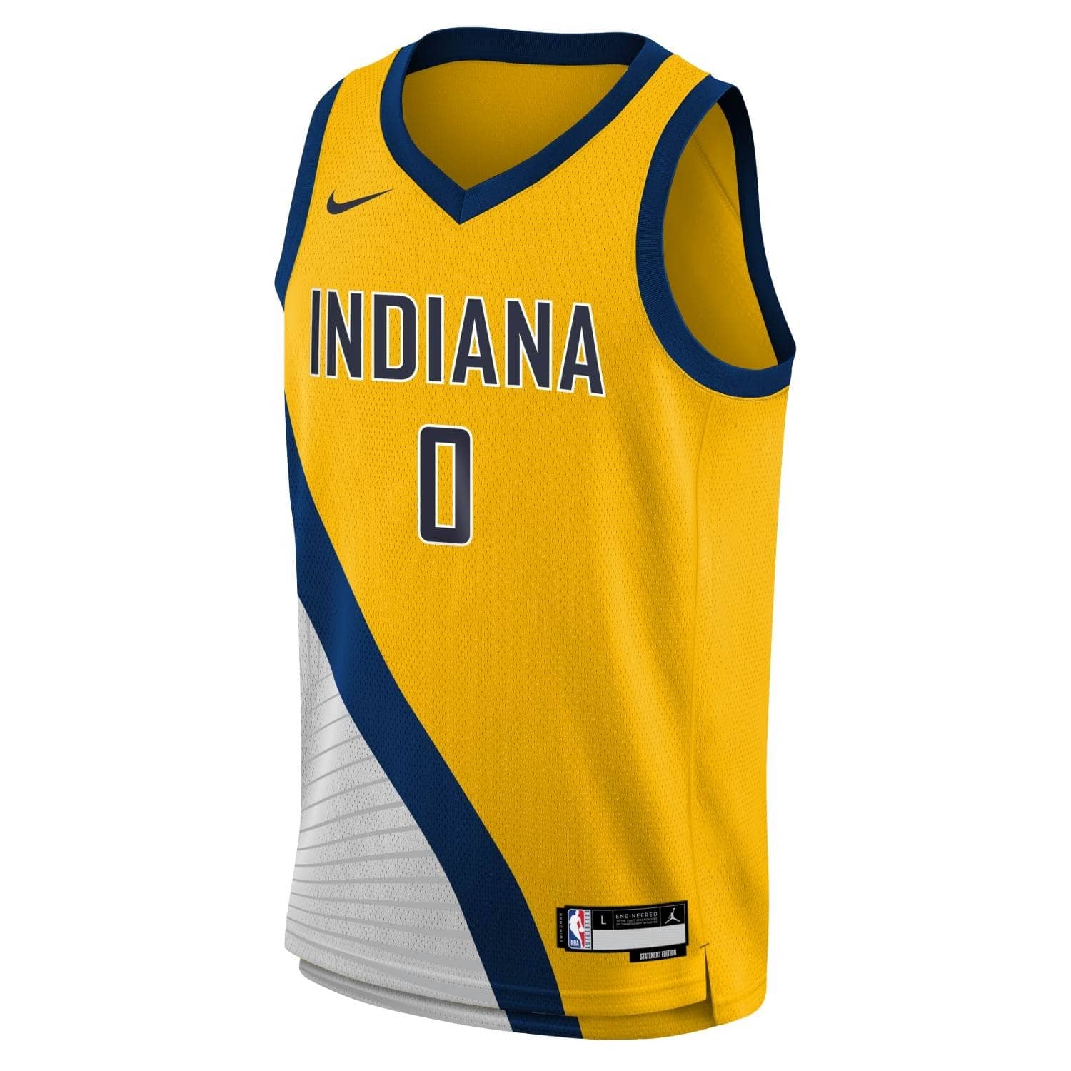 Jordan NBA Youth Statement Edition Basketball Swingman Jersey from Indiana Pacers Superstar Tyrese Haliburton.