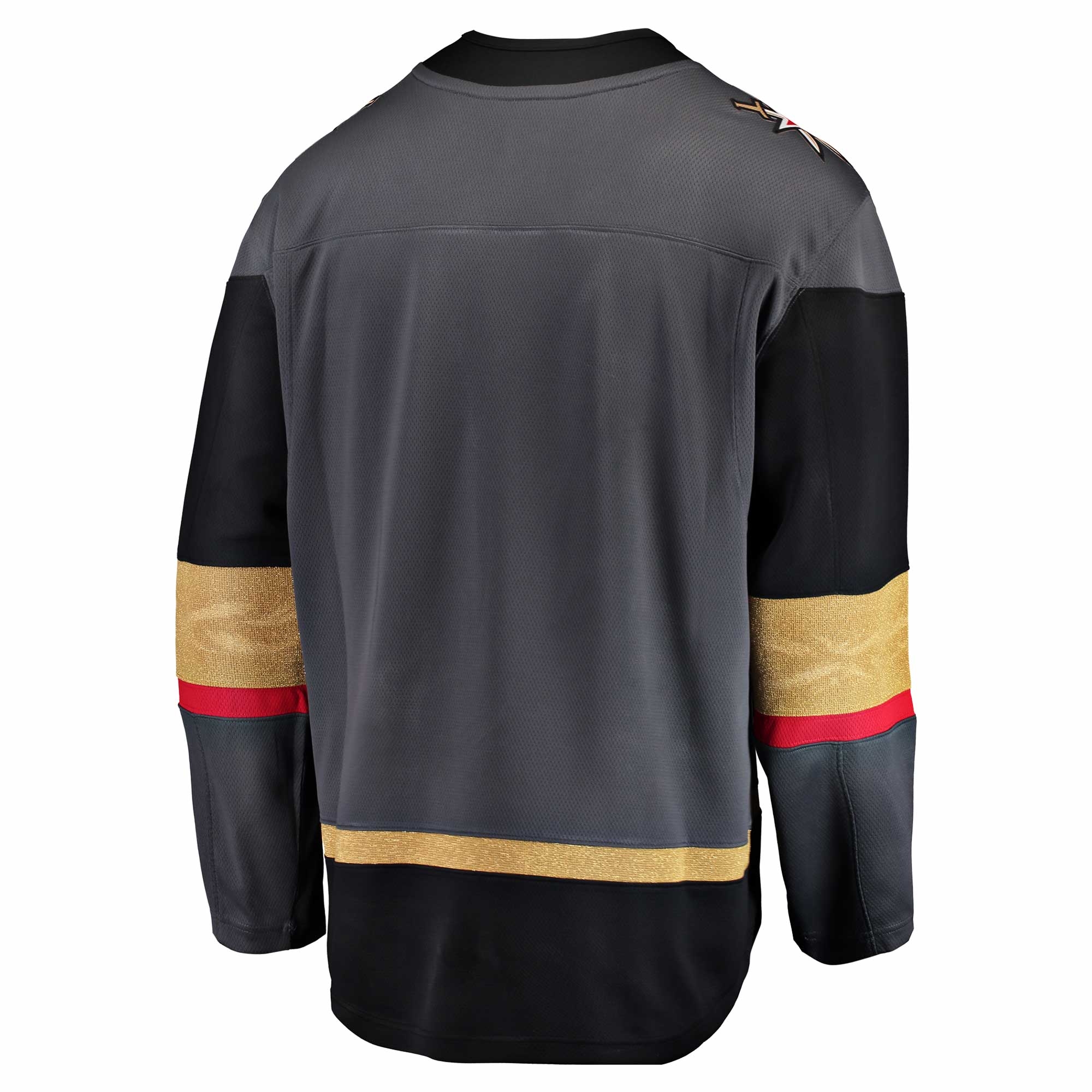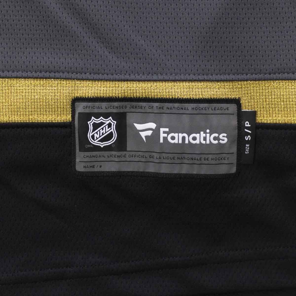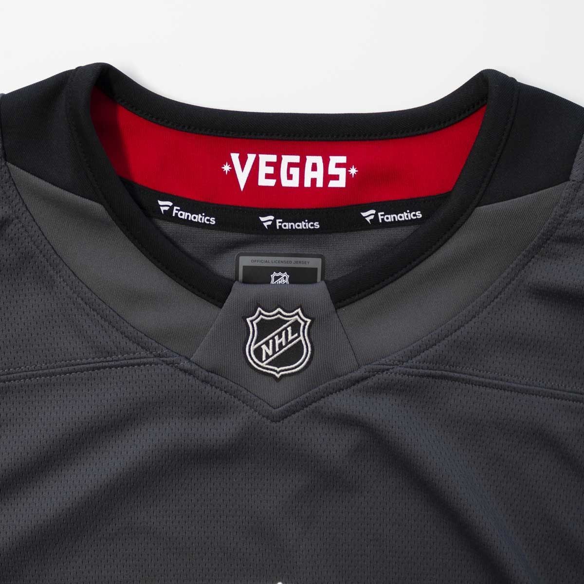 The Vegas Golden Knights Replica Breakaway Jersey offers the authentic on-ice NHL look. Front chest Vegas Golden Knights crest features a combination of direct stitched embroidery and twill applique. NHL shield logo patch sewn to bottom of front collar, Fanatics logo tag sewn to bottom hem.