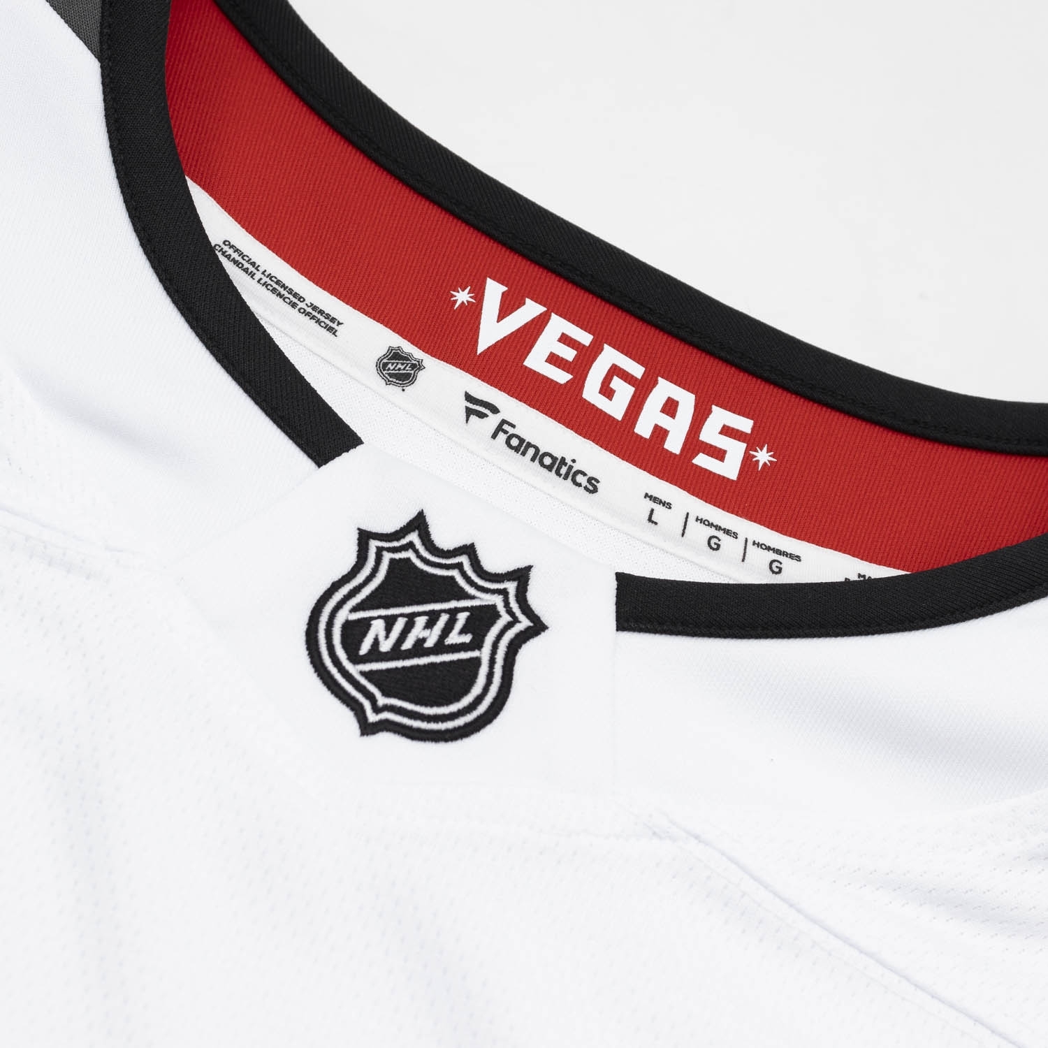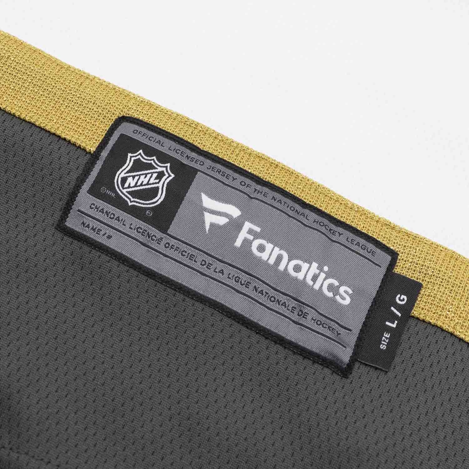 The Vegas Golden Knights Replica Breakaway Jersey offers the authentic on-ice NHL look. Front chest Vegas Golden Knights crest features a combination of direct stitched embroidery and twill applique. NHL shield logo patch sewn to bottom of front collar, Fanatics logo tag sewn to bottom hem.