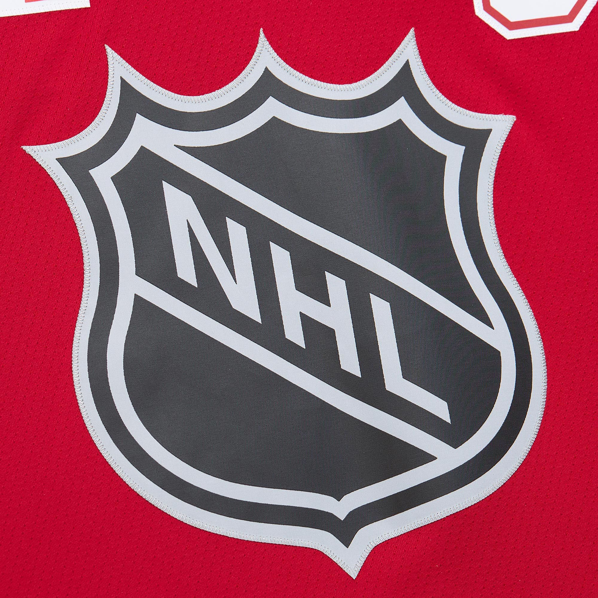 The Mitchell & Ness Blue Line NHL Jerseys are a must-have for every hockey fan and a reminder of the best players and legends of the sport! All logos, numbers and letters are sewn on as high-quality twill patches and replicate the classic All-Star Game design. The Blue Line NHL jerseys are made of 100% polyester with mesh inserts and offer a little more room at the waist and sleeves with a classic hockey fit. This means that you can wear these jerseys over any sweater or pullover.