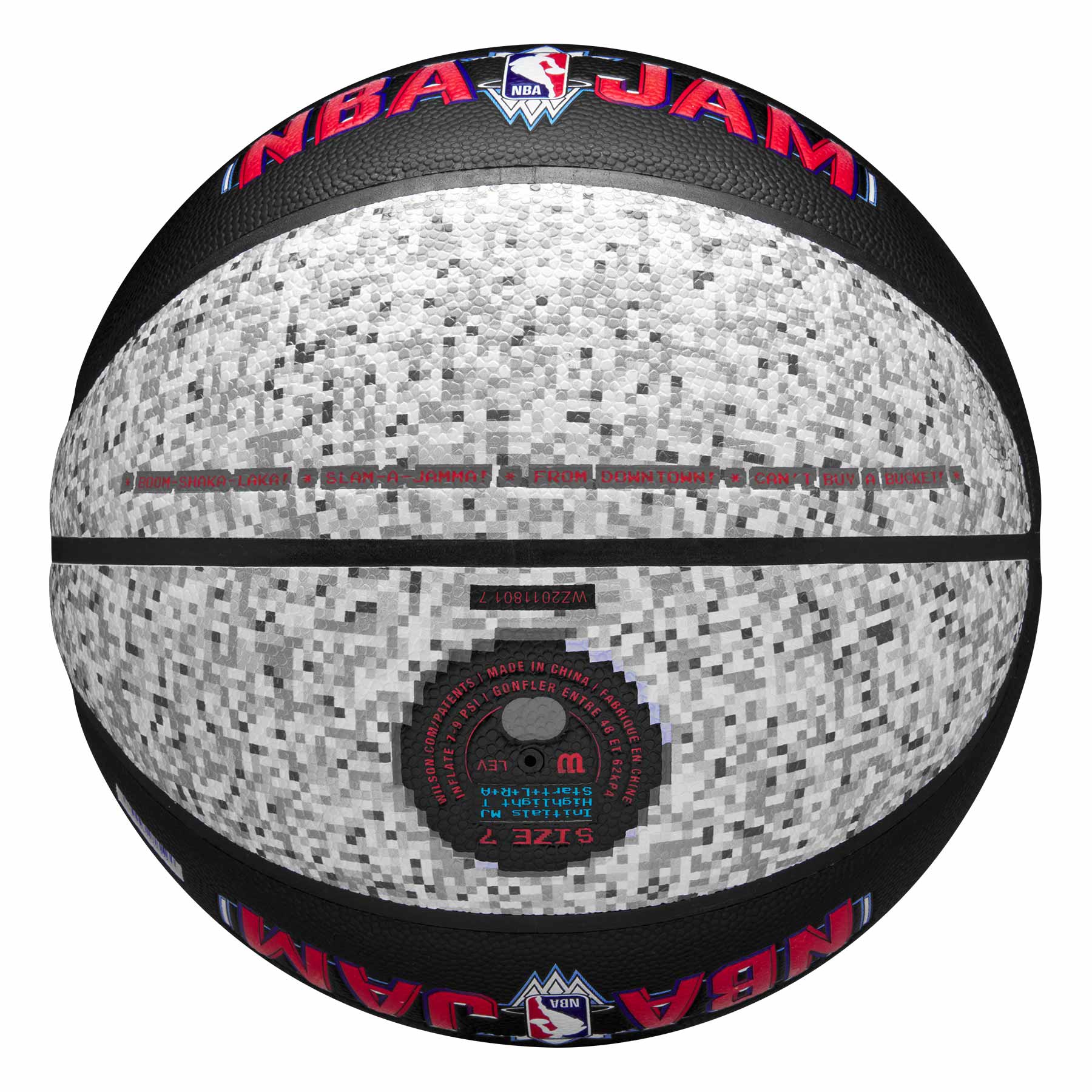 The Wilson NBA JAM Indoor/Outdoor Basketball is assembled with Ever Bounce Construction and Inflation Retention Lining built to endure FROM DOWNTOWN while delivering consistent, predictable bounce over time. Finished with the BOOM SHAKA LAKA Pure Feel Cover designed for the pro-level feel.