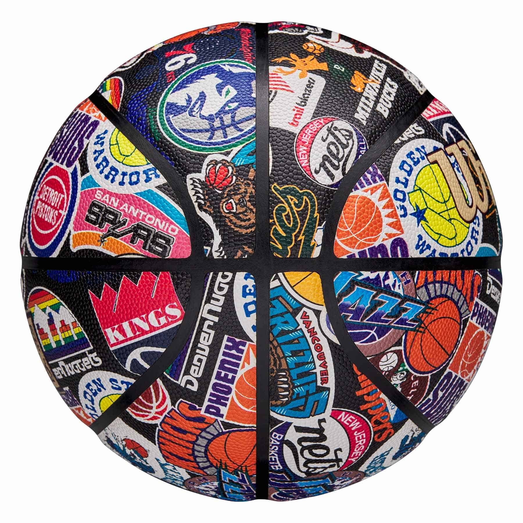 Wilson NBA Pure Feel Indoor/Outdoor Basketball featuring the Hardwood Classics Team Logos.