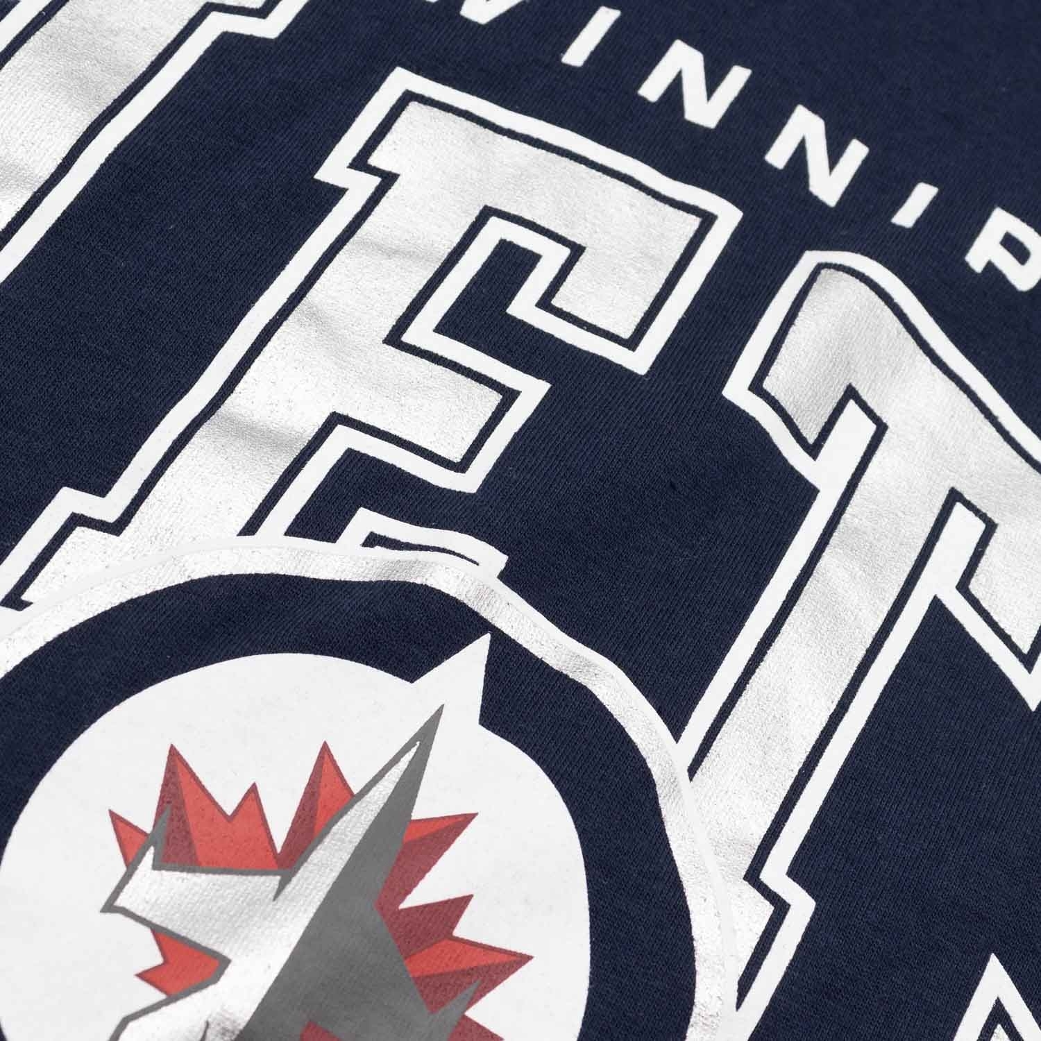 - Team-Centric Design: The front chest showcases a bold screen-printed "Winnipeg Jets" graphic with the iconic team logo, while the back neck is adorned with the NHL shield for added flair.