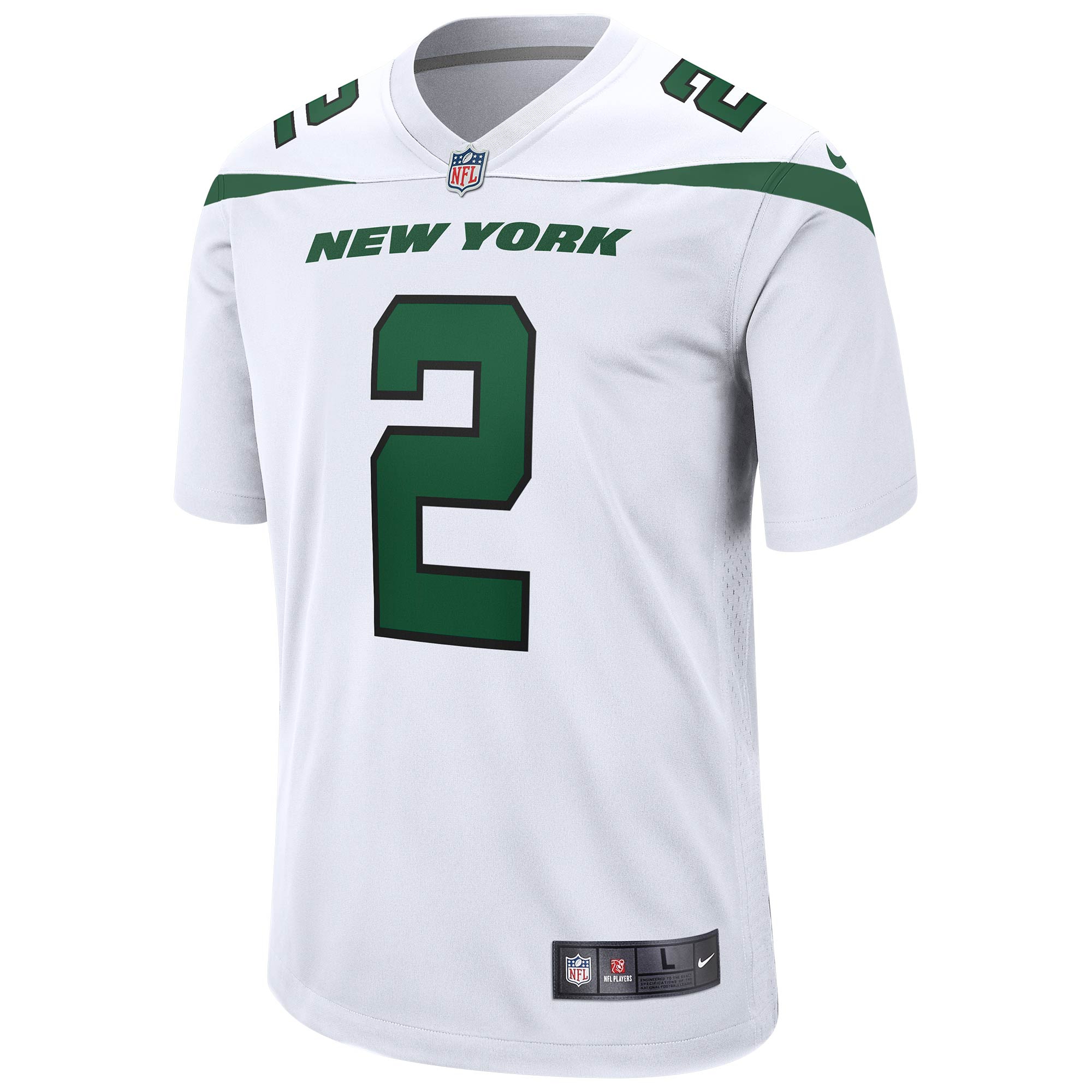 Rep your favorite team and player anytime in the NFL Game Jersey, inspired by what they're wearing on the field and designed for total comfort. The jersey features screen-printed Zach Wilson NY Jets graphics letting everyone know who you cheer for: J-E-T-S! Featuring strategic ventilation for breathability, woven jock tag at front lower left, NFL shield at V-neck.