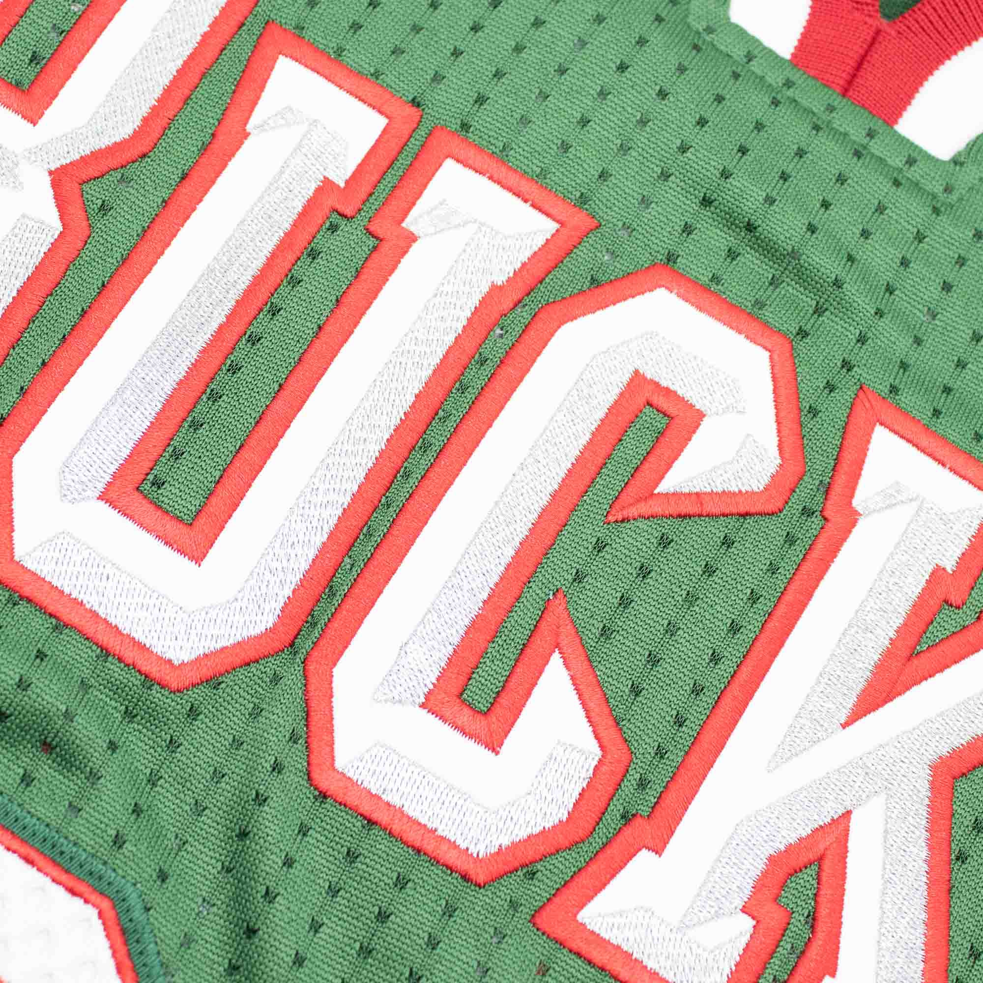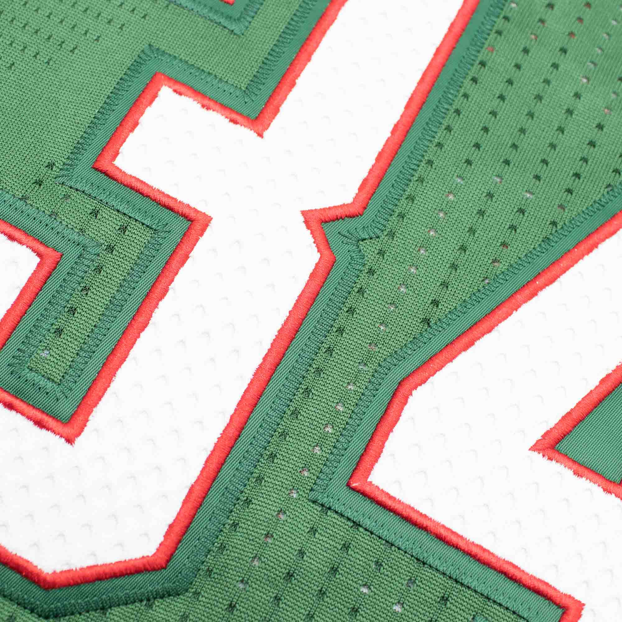 Authentisches NBA-Trikot im genauen Design der Milwaukee Bucks aus der Saison 2013-14. Das Trikot entspricht den originalen On-Court Trikots der NBA-Profis aus dieser Ära. Alle Logos, Zahlen und Buchstaben sind hochwertig aufgenäht. Der Stoff ist extra schwer und robust, um dem Spielbetrieb standzuhalten. Der Bucks-Schriftzug, der Spielername (ANTETOKOUNMPO) und die Nummern 34 sind hochwertig, in teilweise dreifacher Lage, aufgenäht. Das Mitchell & Ness Hardwood Classics Label am Saum ist ebenfalls aufgenäht, das NBA Logo ist aufgestickt. Die Mitchell & Ness NBA Trikots aus der Authentic Collection sind ein besonderes Must-Have für jeden Giannis-Fan und eine Erinnerung an die besten Spieler und Legenden dieses Sports!