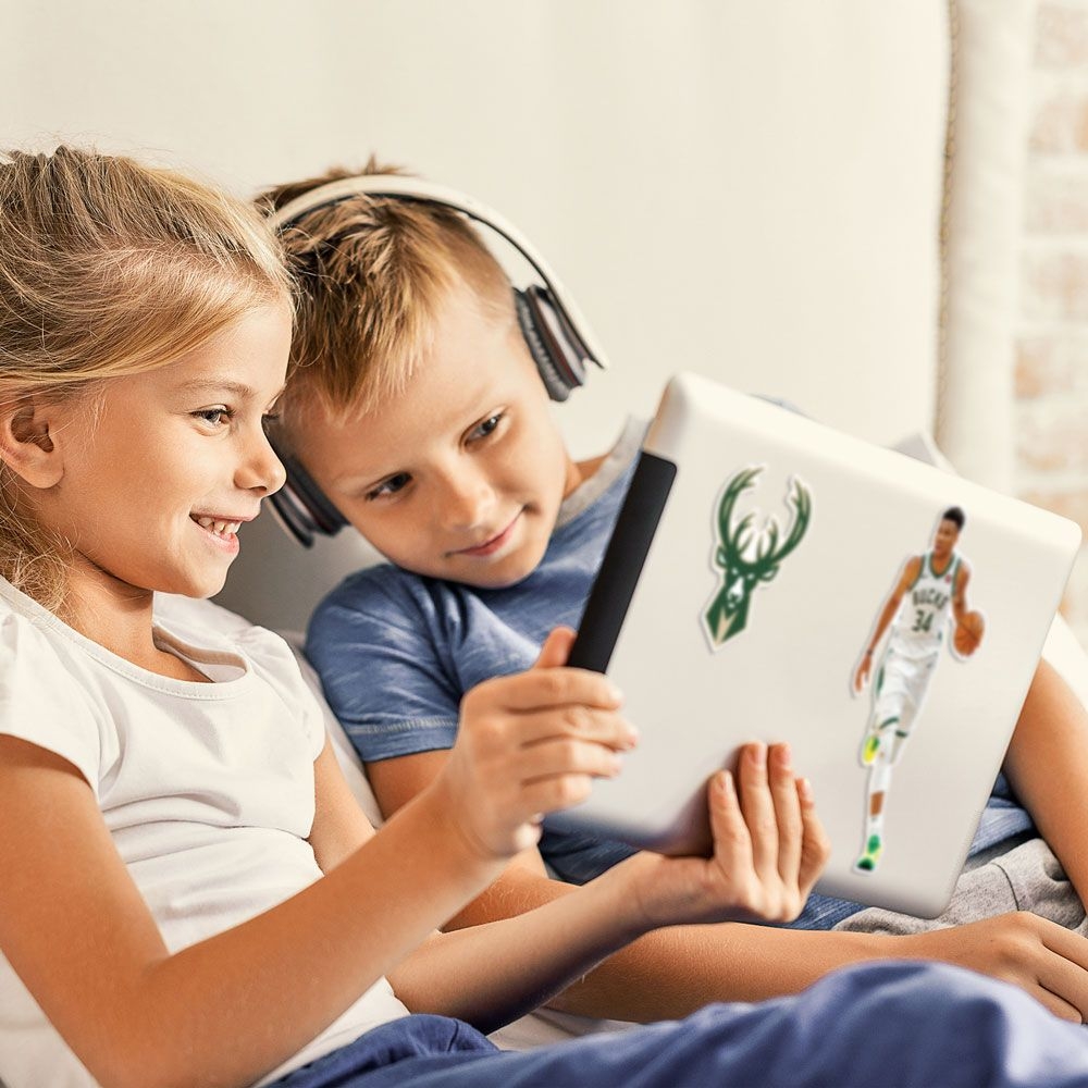 WinCraft NBA dreiteiliges Multi-Use Aufkleber-Set von Milwaukee Bucks Superstar Giannis Antetokounmpo.
