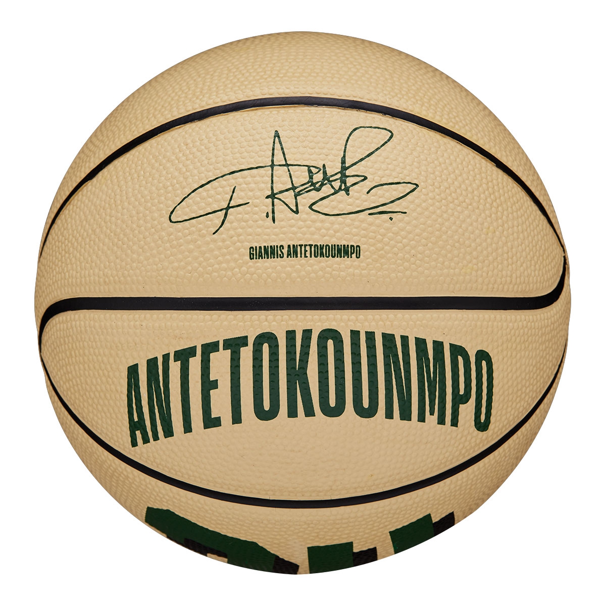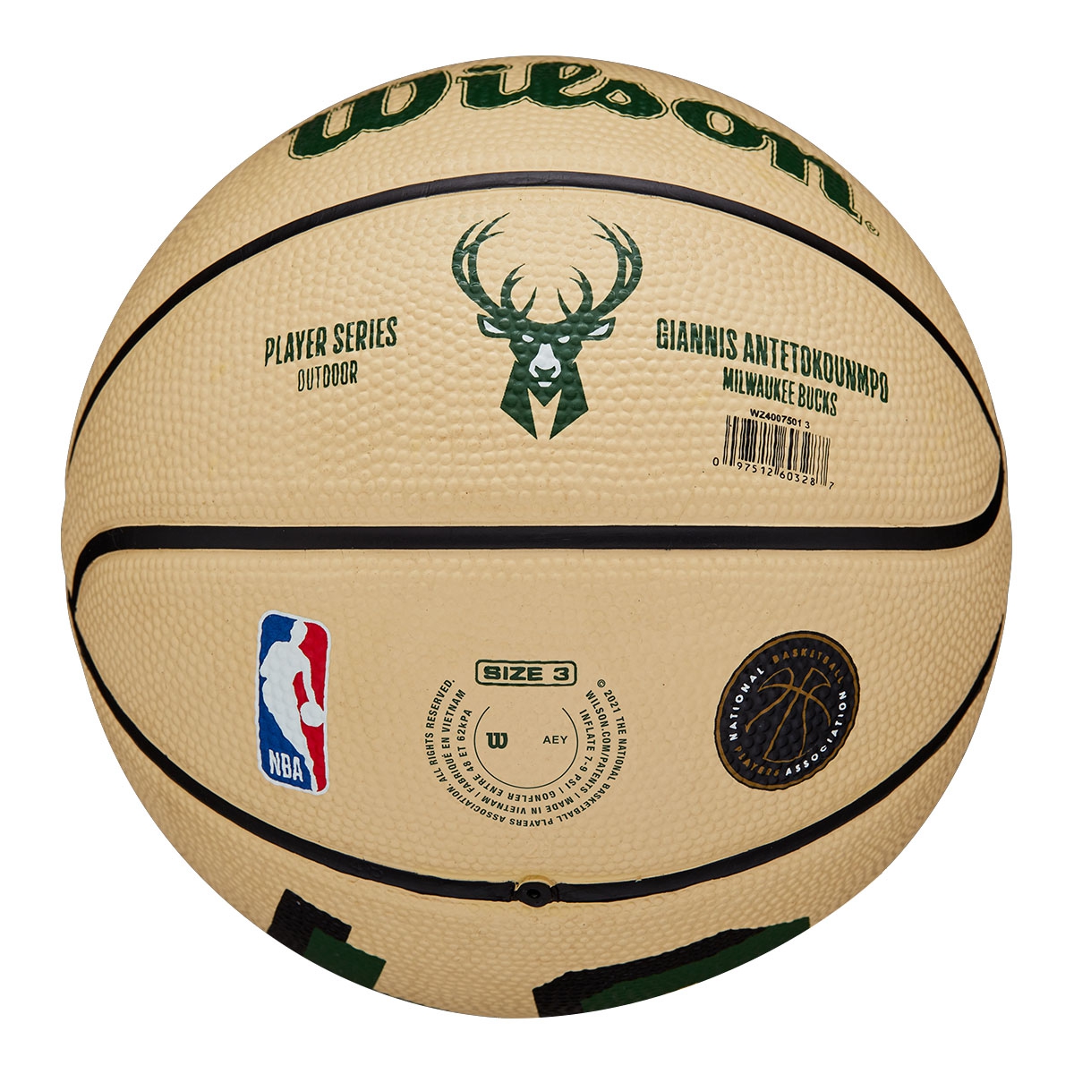 Wilson NBA Player Mini-Basketball von Milwaukee Bucks Superstar Giannis Antetokounmpo im offiziellen Team-Design.