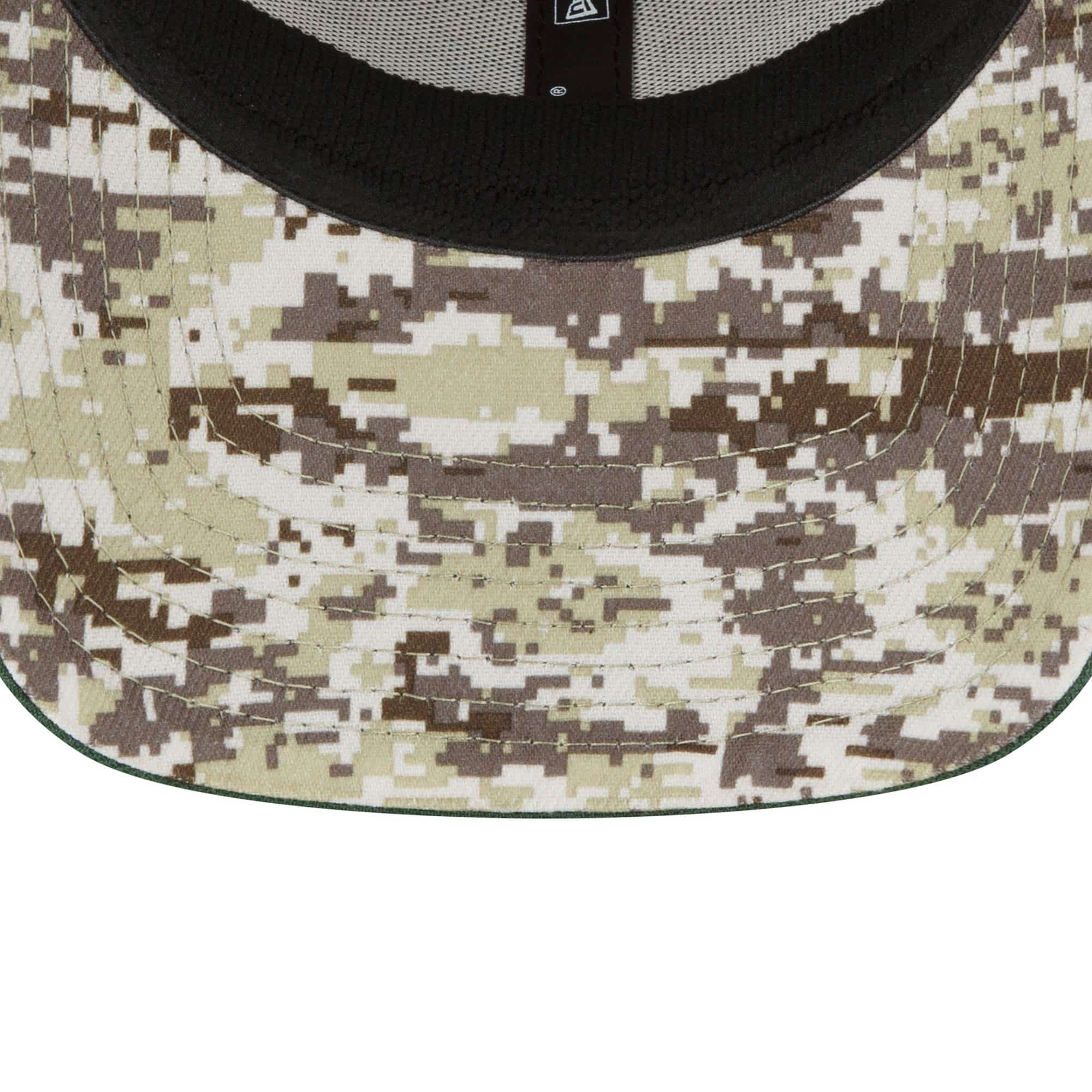 Die 2022 Salute to Service Cap von New Era überzeugt jeden NFL-Fan im US Military Design! Die Flex Cap ist auf der Vorderseite zentral mit dem Green Bay Packers Teamlogo im einmaligen Military Design bestickt. Die rechte Capseite ist mit der amerikanischen Staatsflagge bestickt und die Rückseite ziert die offizielle NFL Salute to Service Schleife. Abgerundet wird das Militärdesign mit der Digital Camo Schirmdekoration auf der Unterseite und dem teamfarbenen Schirm.