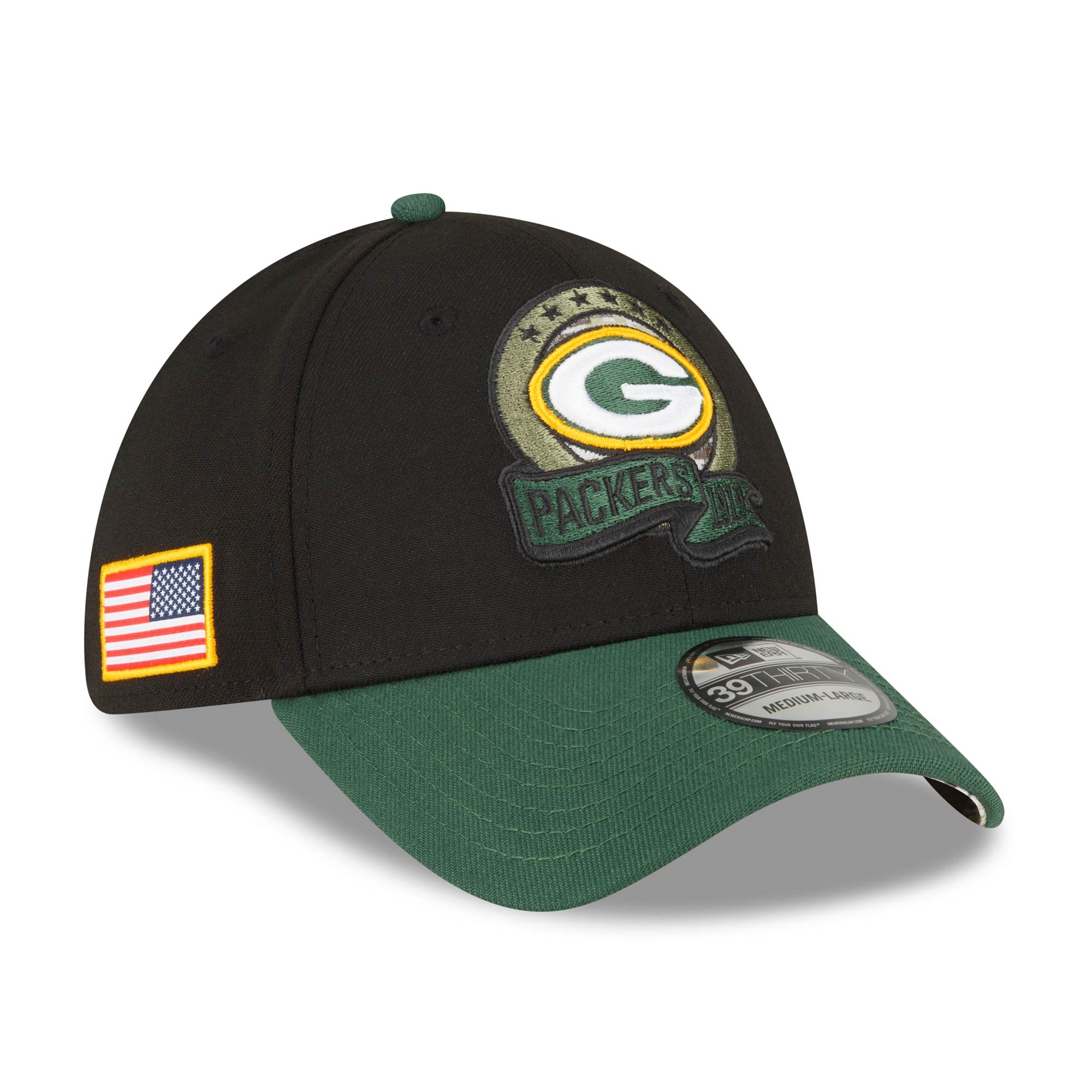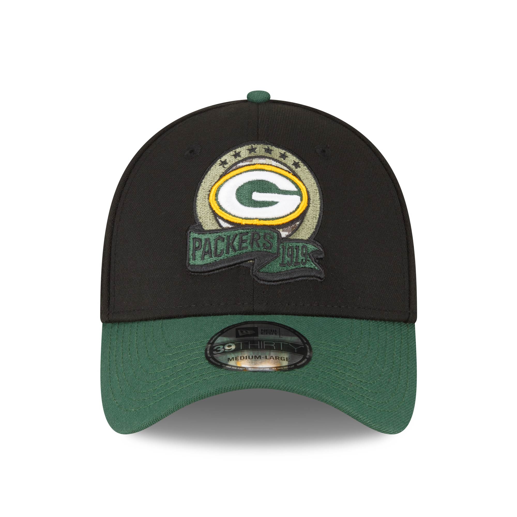 New Era American Football Stretch-Fit Cap von deinen Green Bay Packers im 39THIRTY Style aus der 2022 NFL On-Field Salute to Service Kollektion.