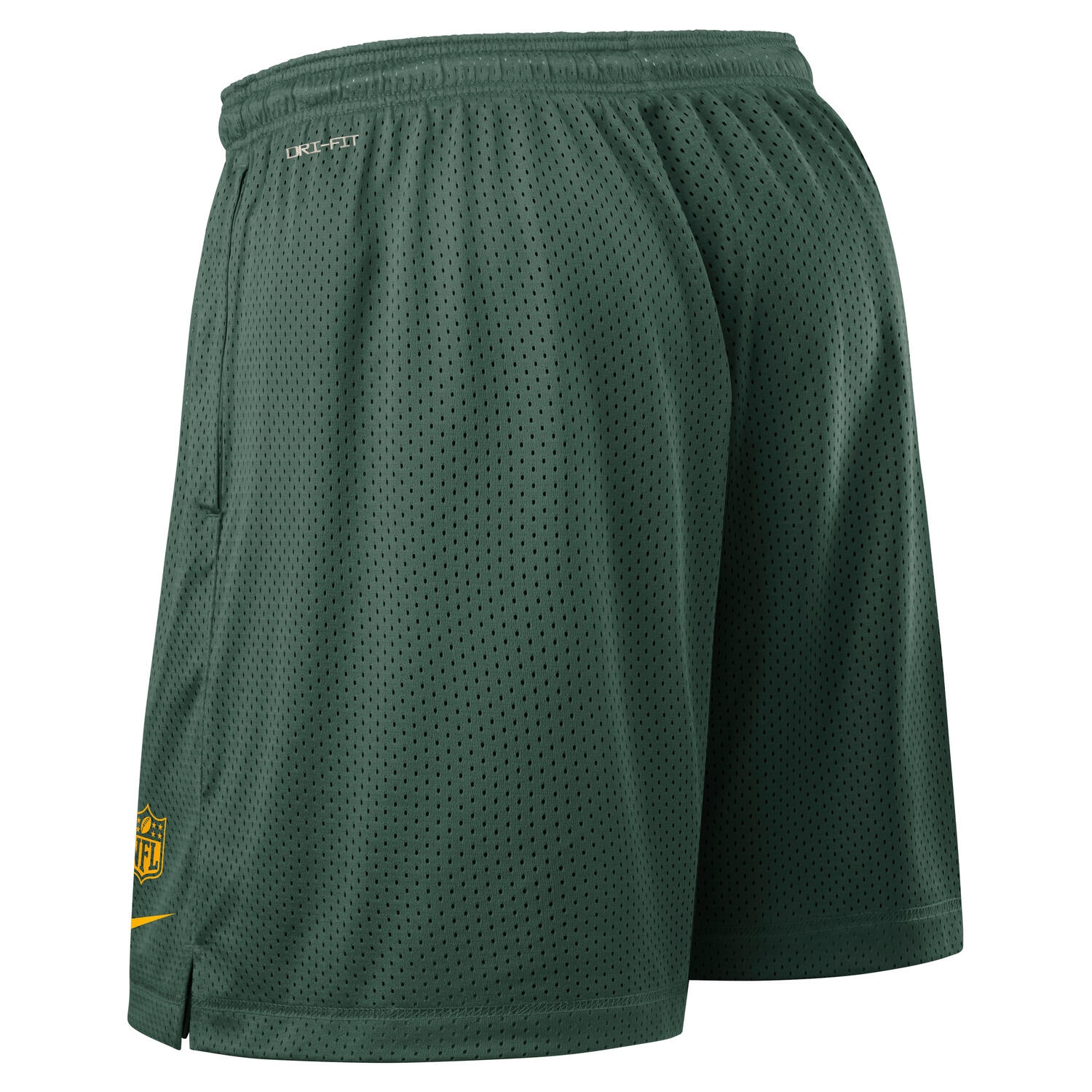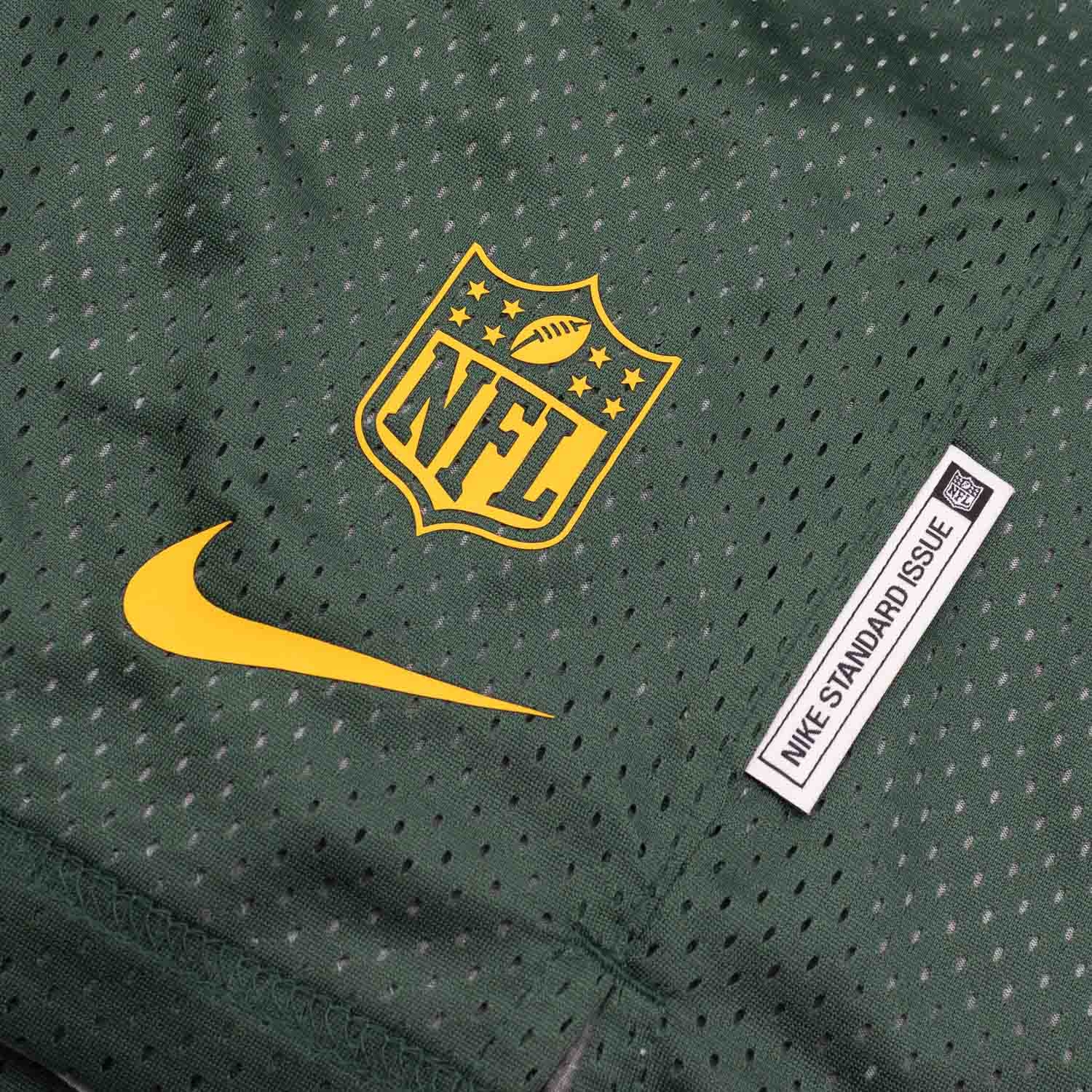 Nike Herren American Football Dri-FIT beidseitig tragbare Reversible Mesh Shorts von deinen Green Bay Packers im offiziellen 2025 NFL On-Field Sideline Design.